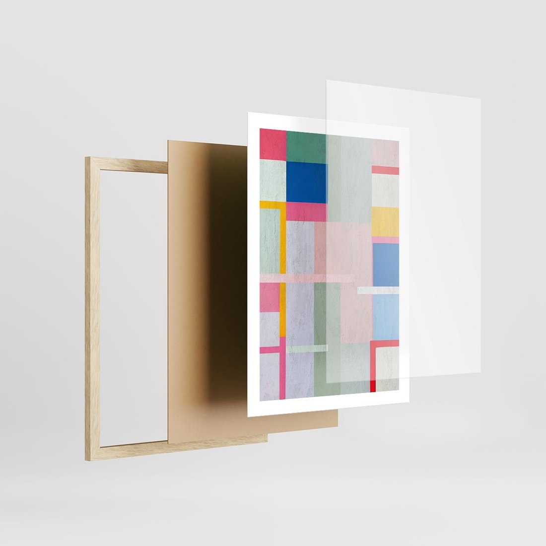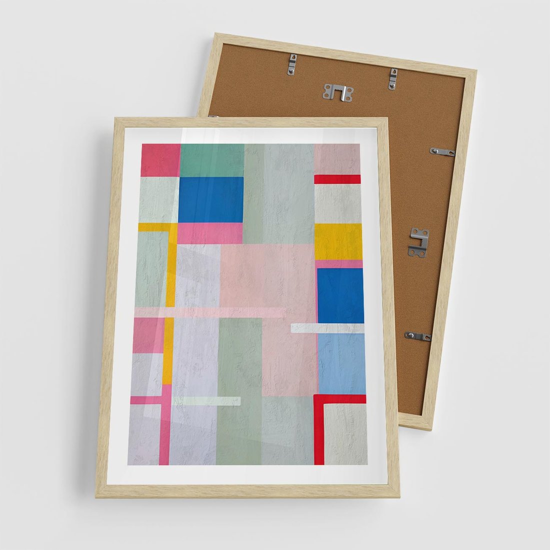 Plakat w ramie 50x70 - Rozbijające Granice Wyobraźni - abstrakcyjne geometryczne kształty, olejny obraz - rama drewno