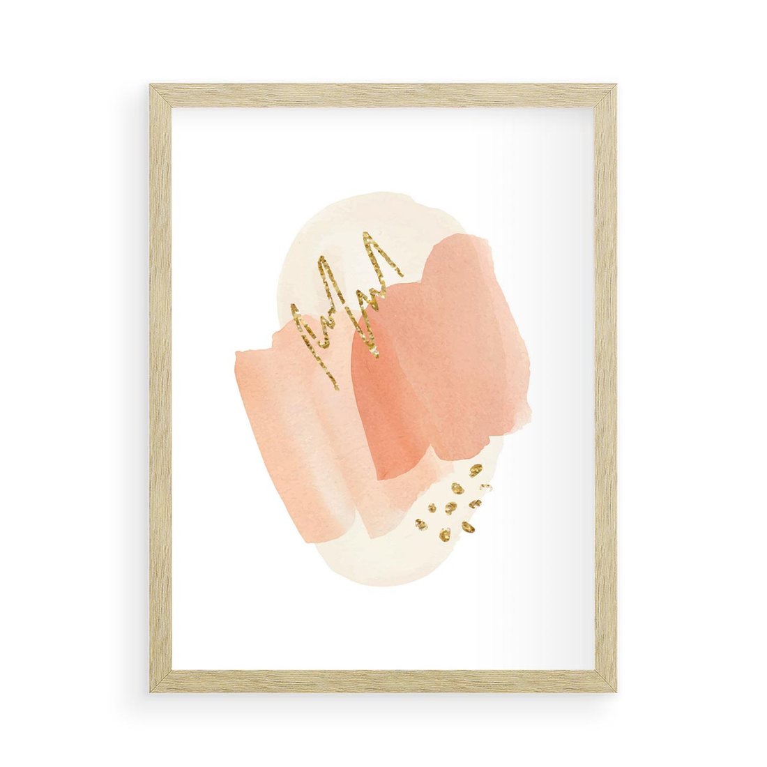 Plakat w ramie 50x70 - Rozbijające Plamy - abstrakcyjne akwarelowe plamy, minimalizm - rama drewno