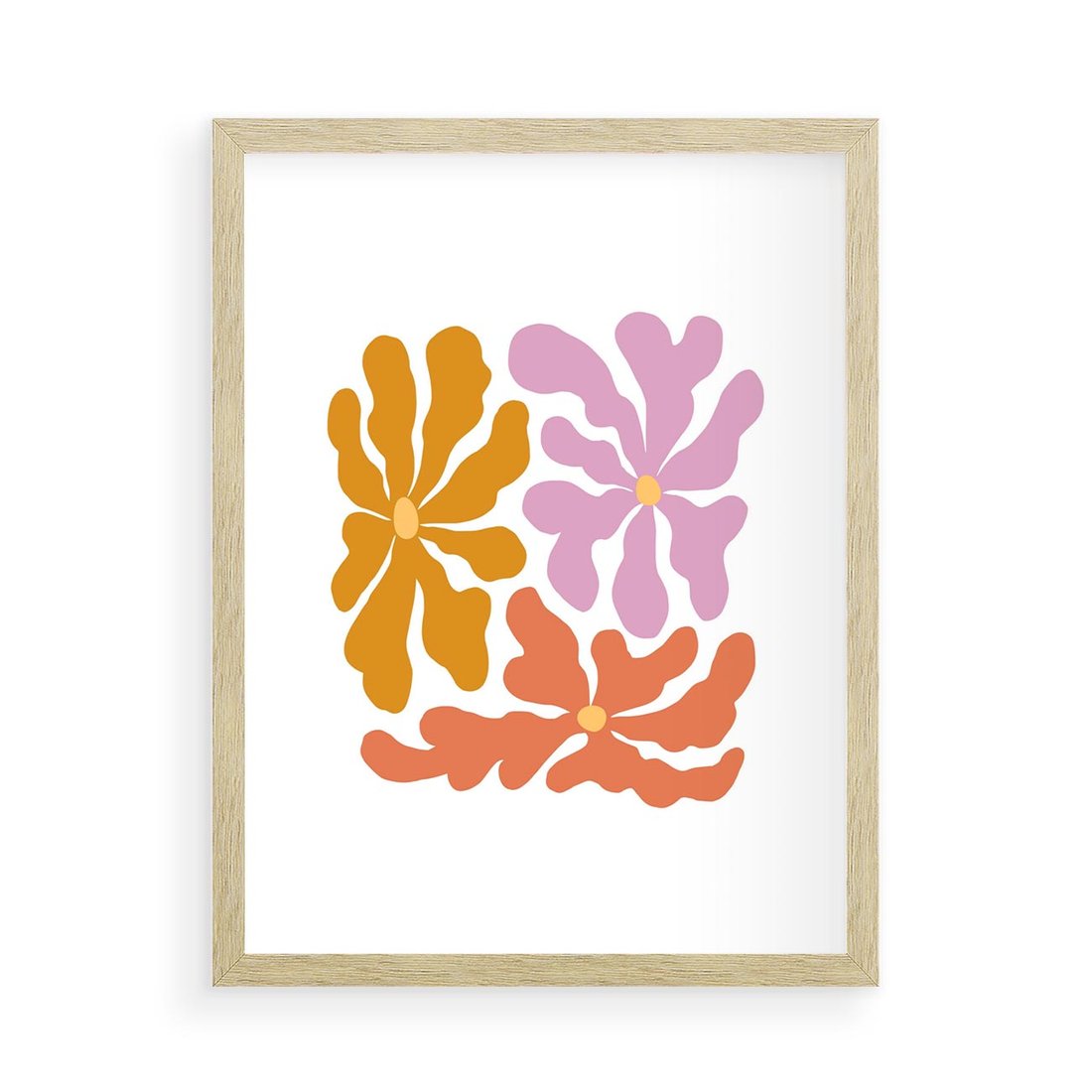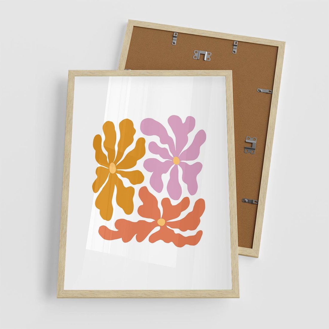 Plakat w ramie 50x70 - Rozbijające Refleksje - abstrakcyjne kolorowe kwiaty, minimlizm - rama drewno