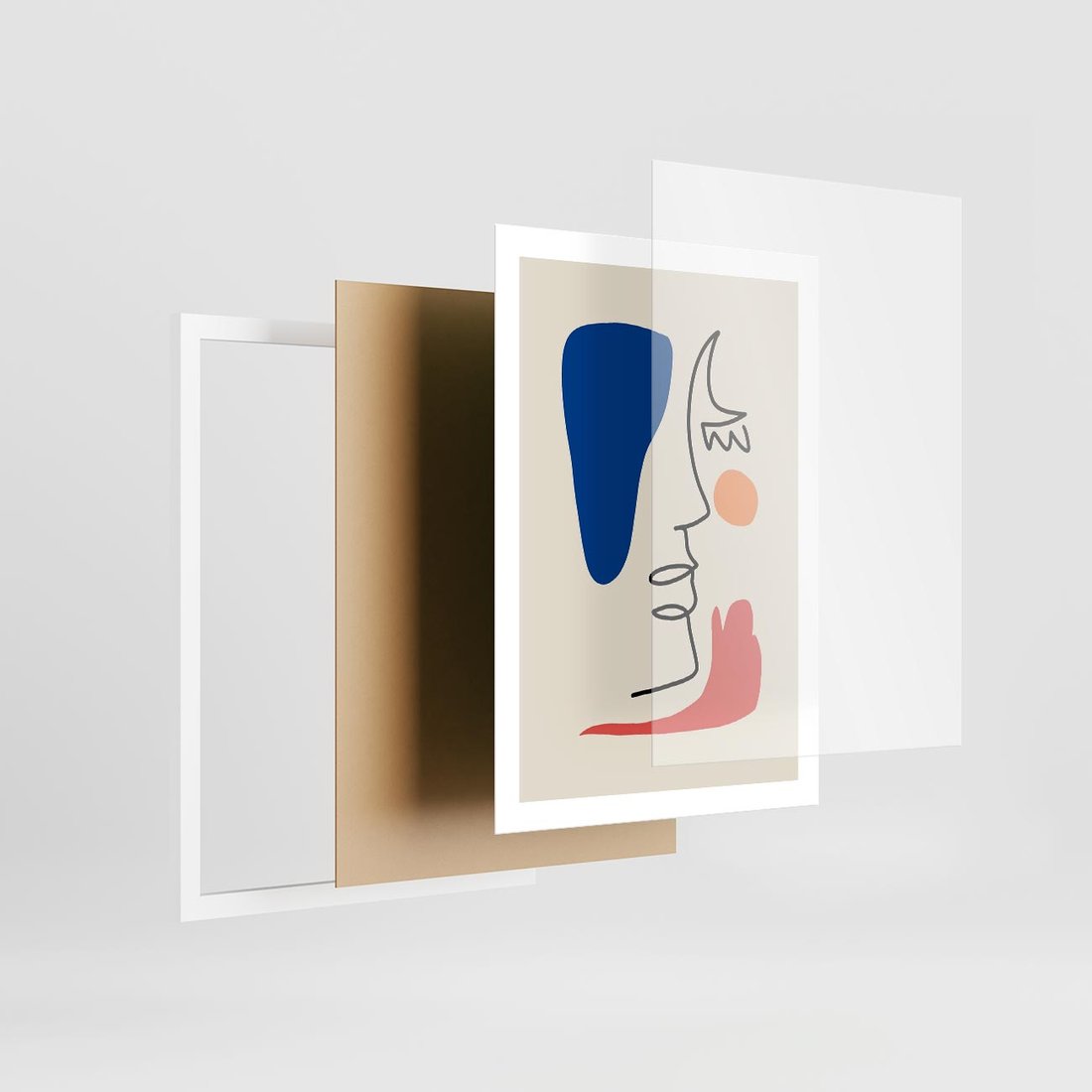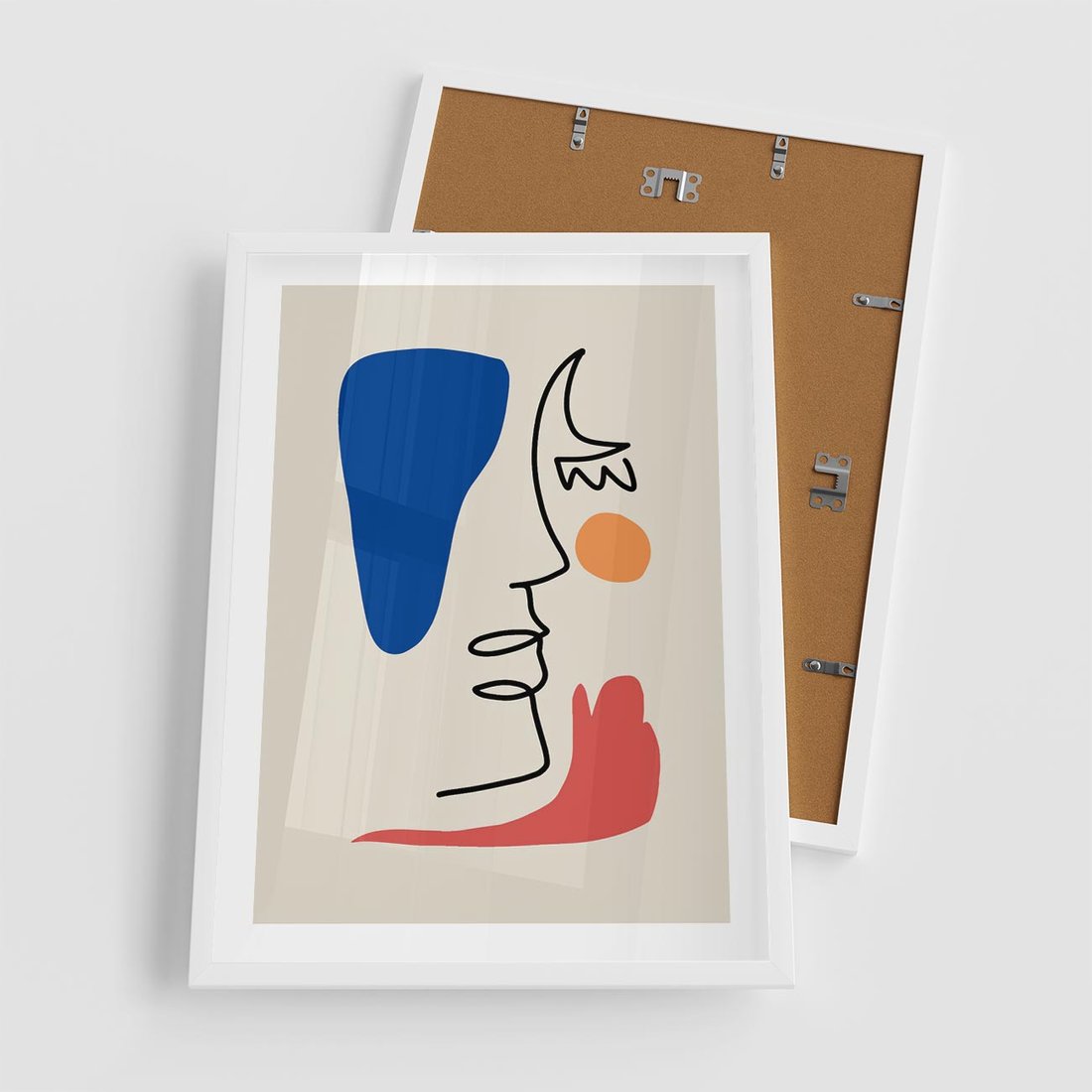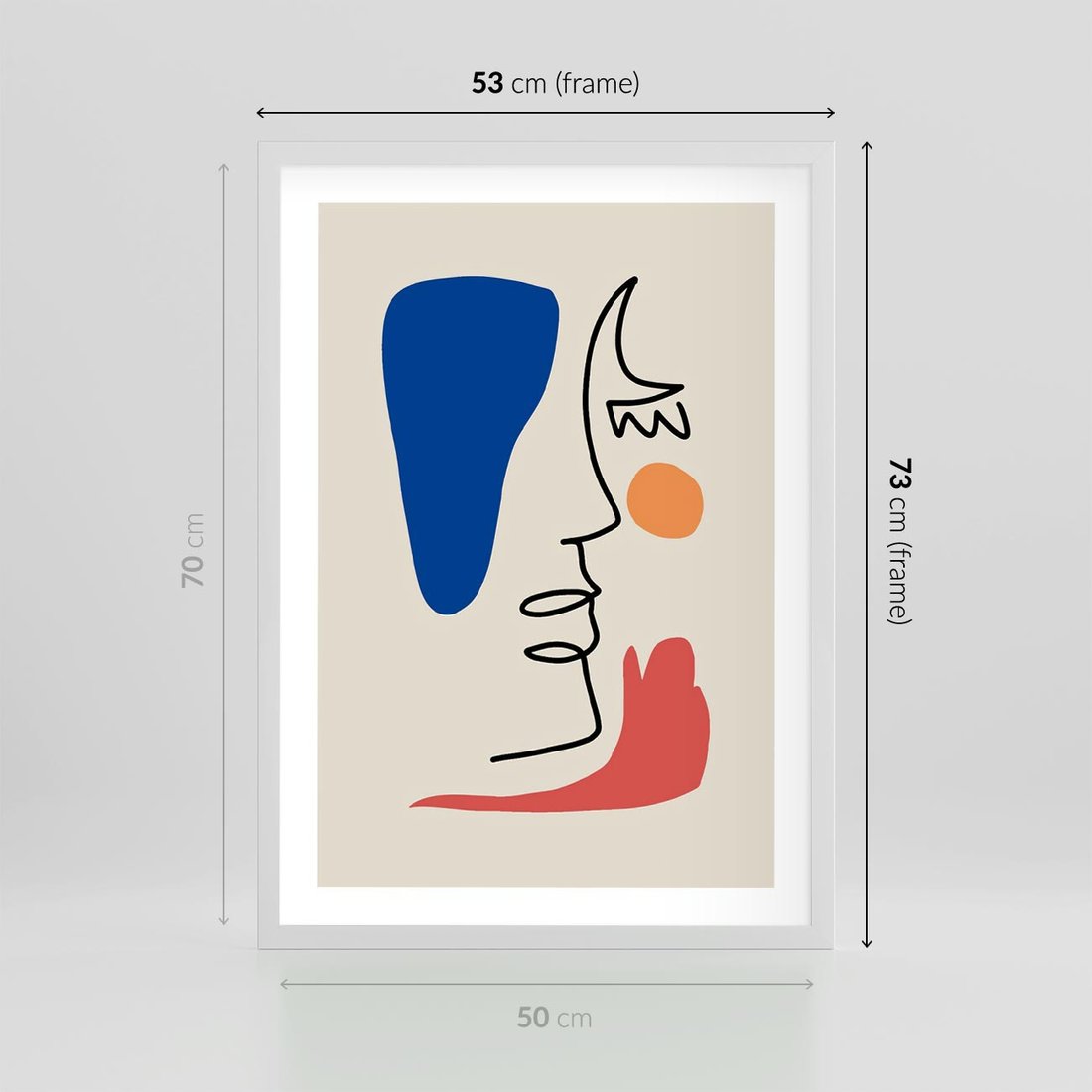 Plakat w ramie 50x70 - Rozbijające Symfonie Form - abstrakcyjny obraz, przypomina twarz - rama biała