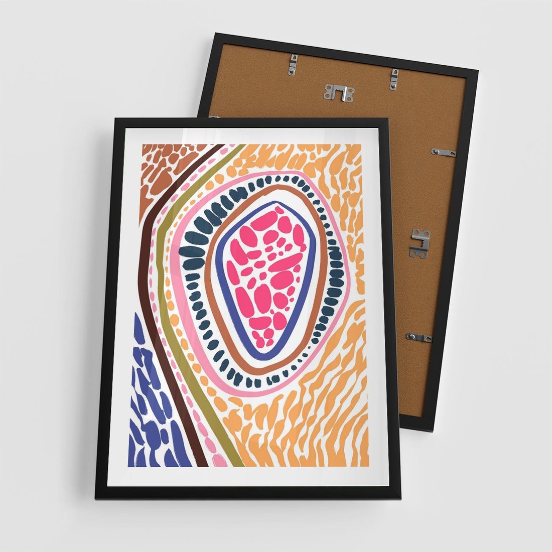 Ten nowoczesny plakat prezentuje kolorowe wzory w tęczowych, żywych kolorach, w formie plam i cipek. To energetyczne i pełne życia połączenie wprowadza do Twojej przestrzeni radość i wyrazistość, tworząc jednocześnie interesujący akcent artystyczny.