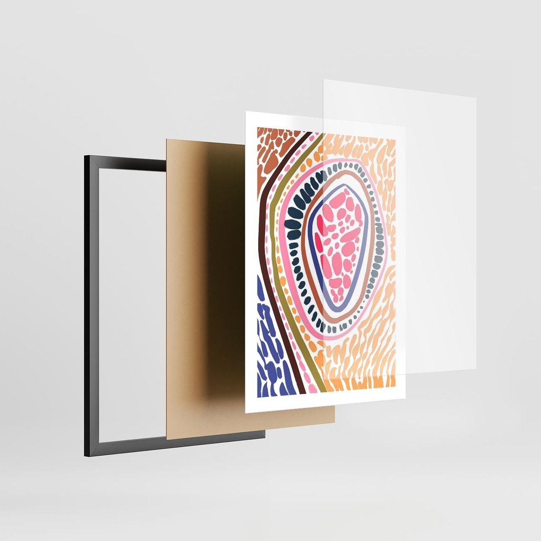 Plakat w ramie 50x70 - Rozchlapane Wizje - kolorowe wzory, tęczowe żywe kolory - rama czarna