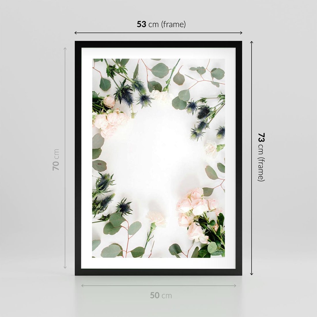 - Plakat w ramie 50x70 - Róże i Zielone Liście