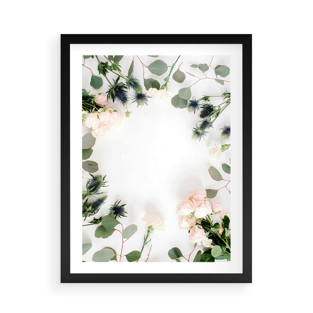 Plakat w ramie 50x70 - Róże i Zielone Liście - kompozycja kwiatowa, róże - rama czarna