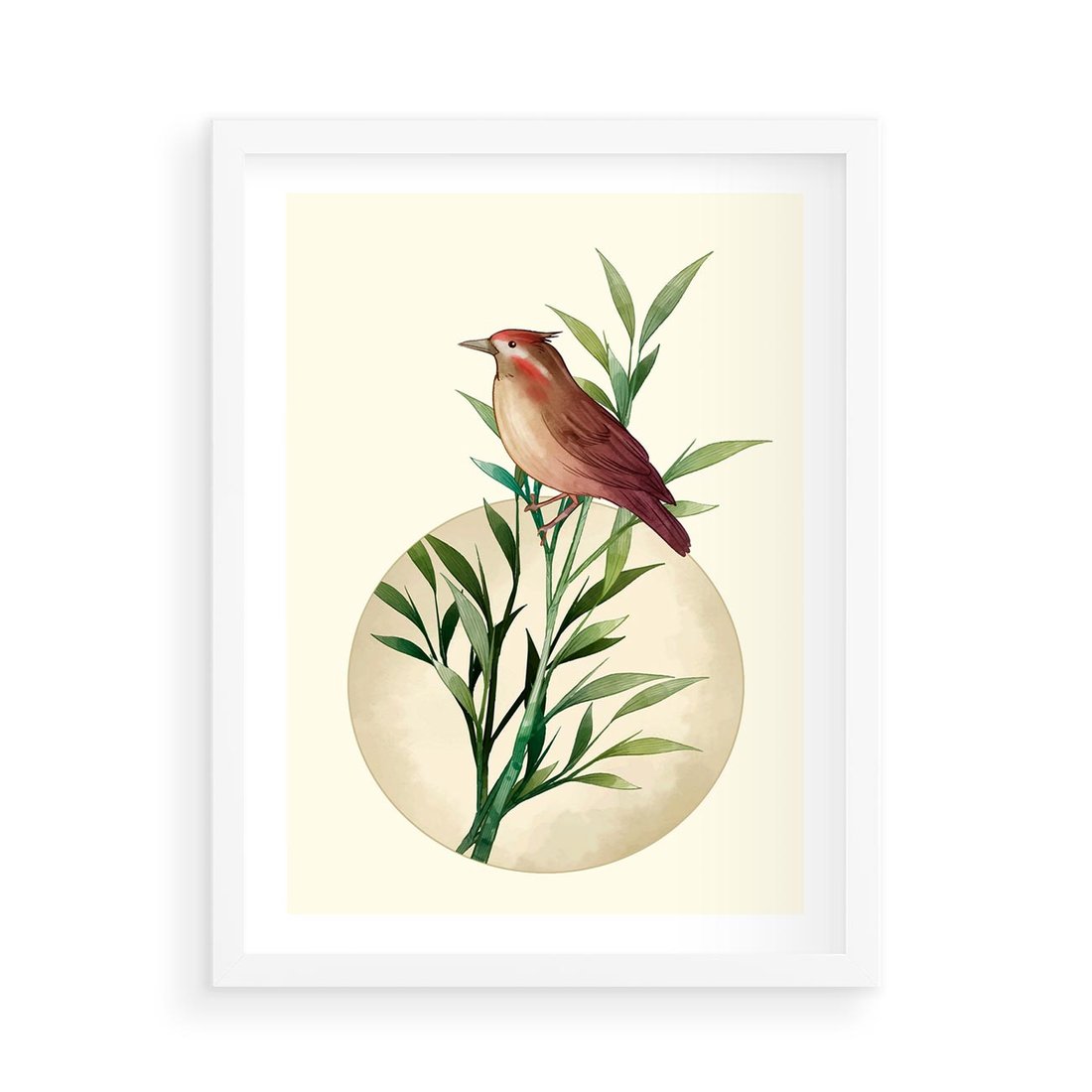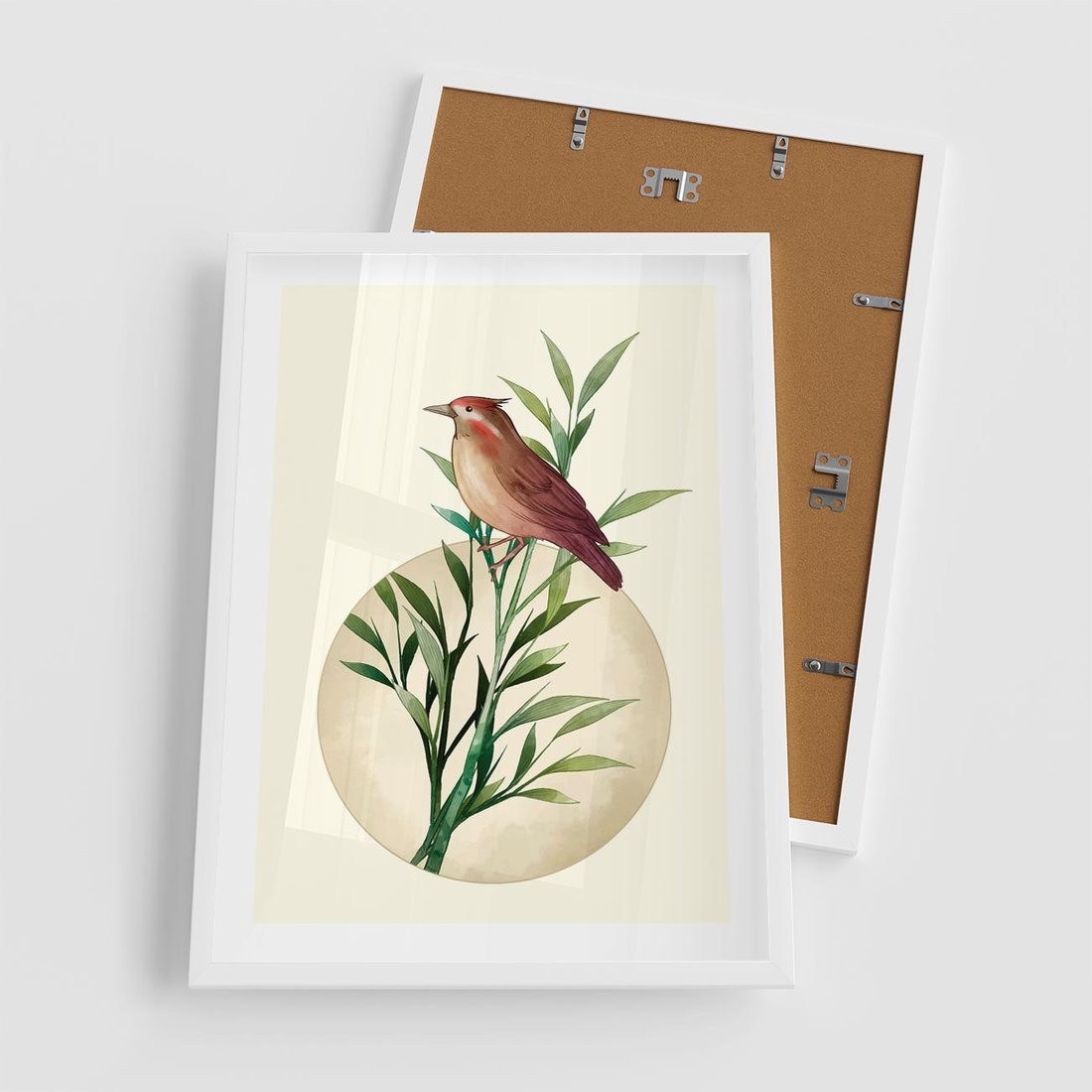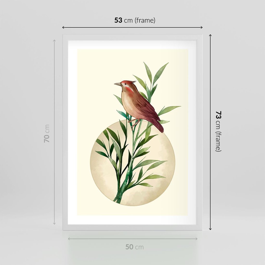 Plakat w ramie 50x70 - Rozkwitająca Delikatność - japońska sztuka, ptak - rama biała