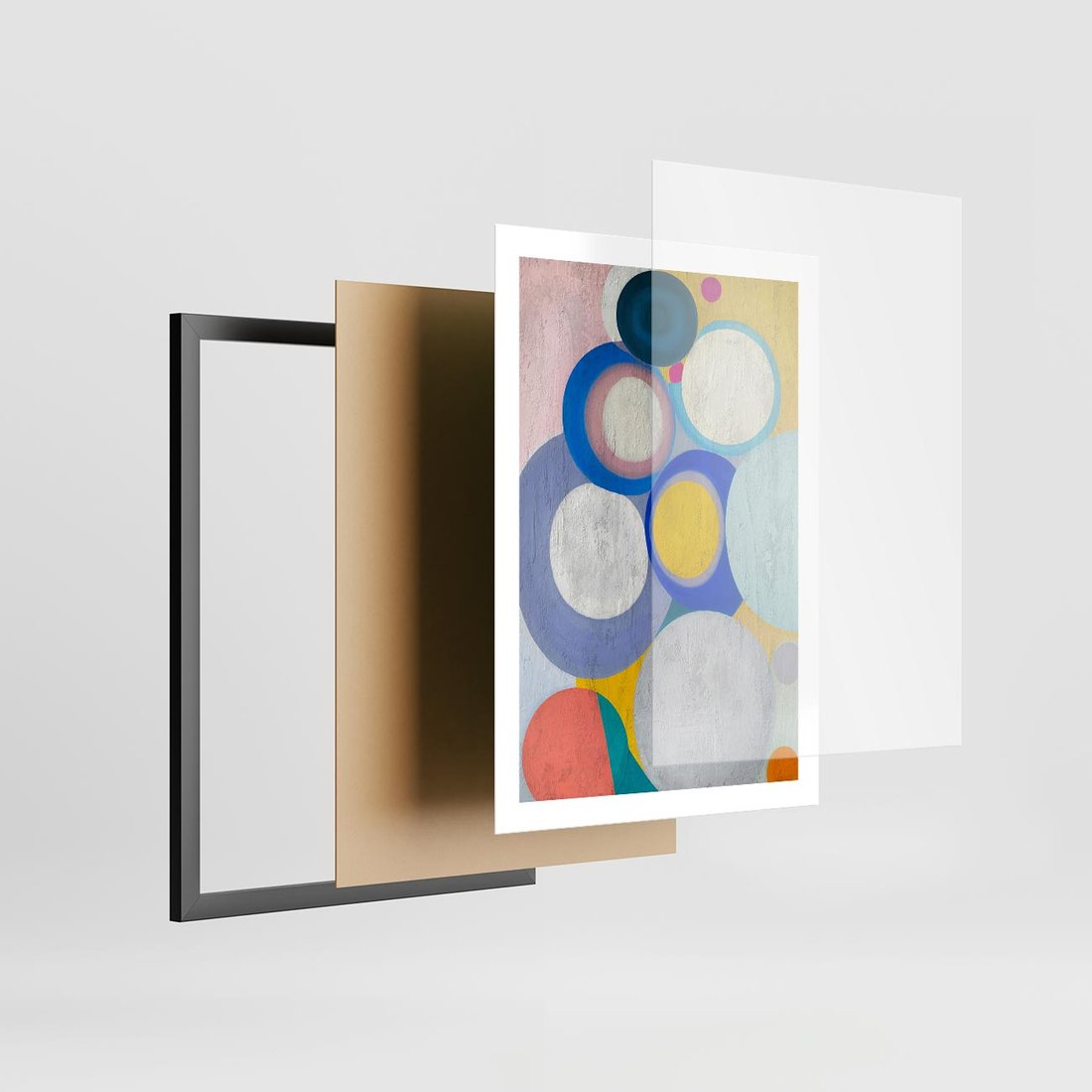 Plakat w ramie 50x70 - Rozkwitająca Symfonia Serca - abstrakcyjne geometryczne kształty, olejny obraz - rama czarna