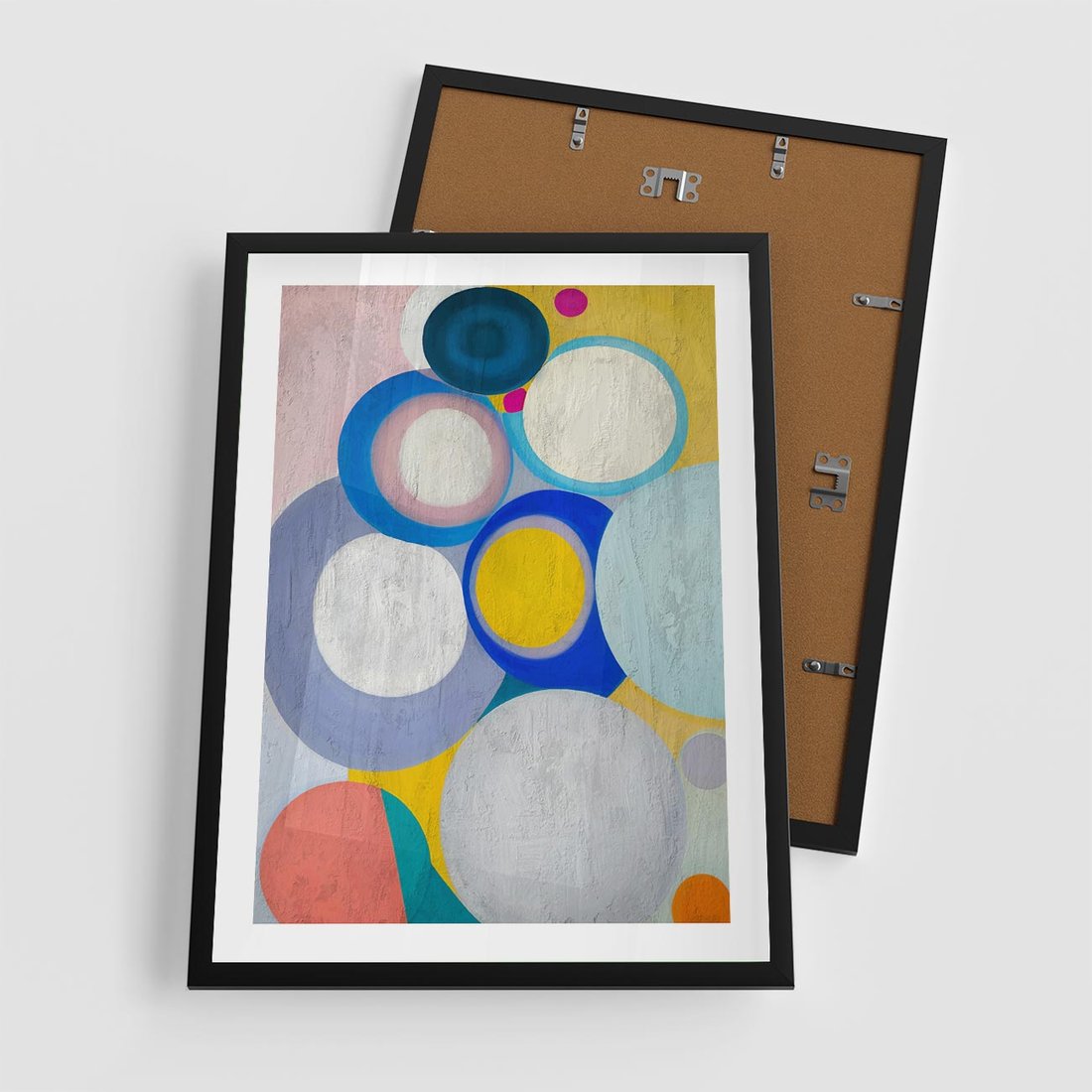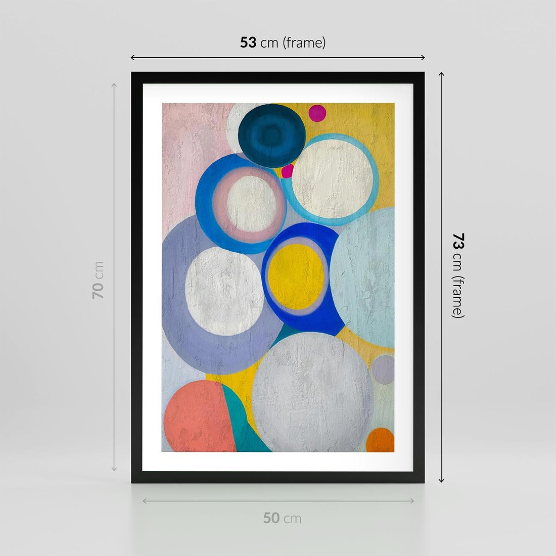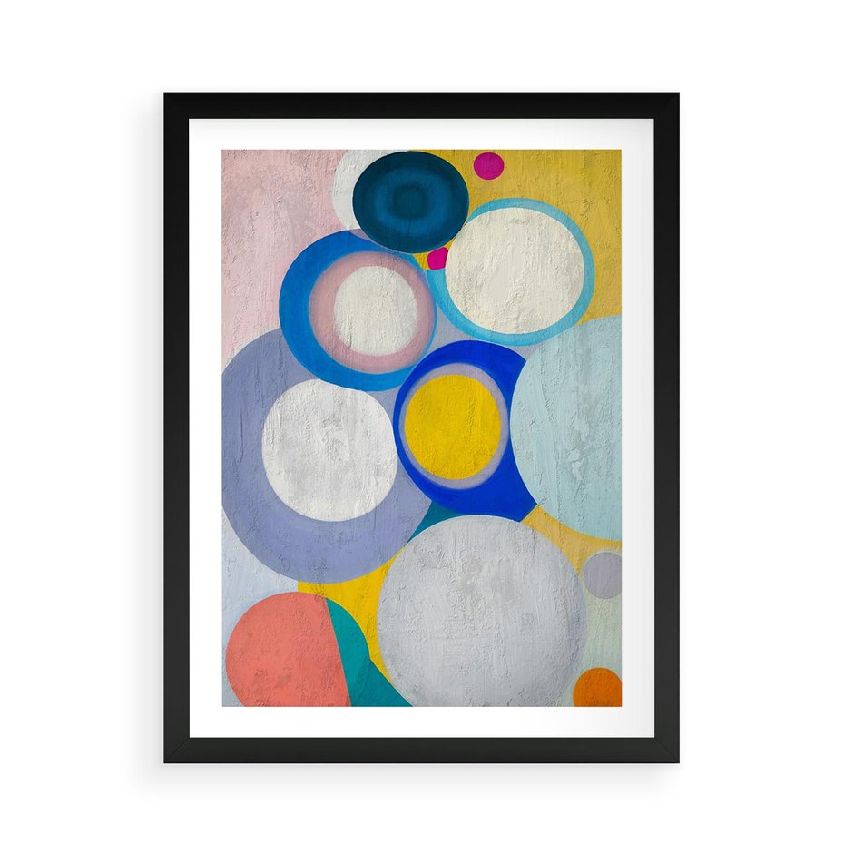 Ten olejny obraz to dynamiczna kompozycja abstrakcyjnych geometrycznych kształtów, wzbogacona o intensywne i żywe kolory. Koła w różnych rozmiarach tworzą ciekawą grę form i perspektyw, nadając dziełu energii i głębokości. To unikalne dzieło sztuki, które wzbogaci każdą przestrzeń i wciągnie w fascynujący świat abstrakcji.