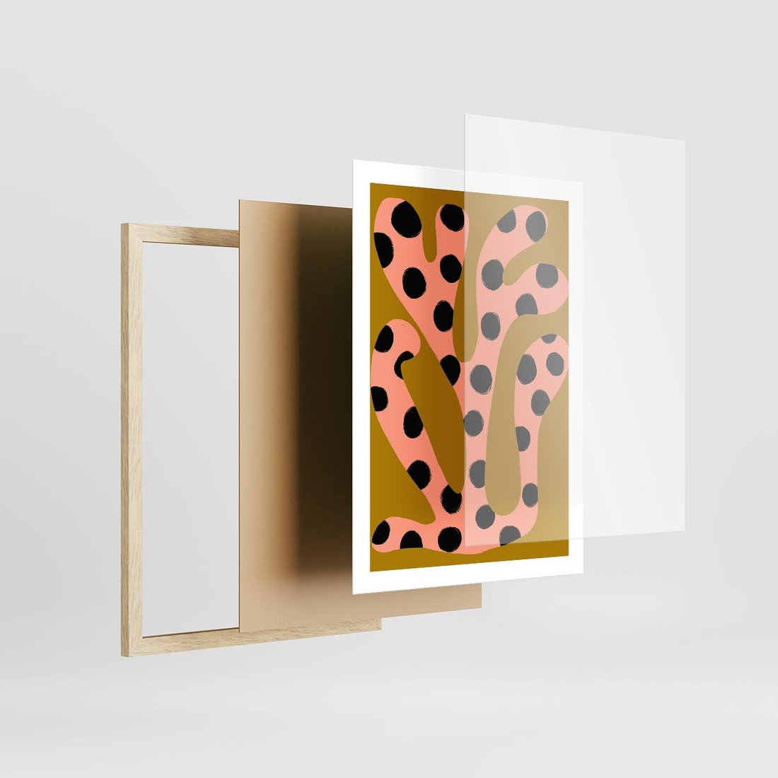 To abstrakcyjne dzieło sztuki w stylu boho zachwyca nietypowymi kształtami, dziwnymi kropkami i ciekawymi ciapkami. Tworzy unikalną kompozycję, która odzwierciedla luźną swobodę charakterystyczną dla tego stylu. Te elementy razem tworzą niezwykłą wizualną opowieść, przenosząc widza w odmienny wymiar ekspresji artystycznej.