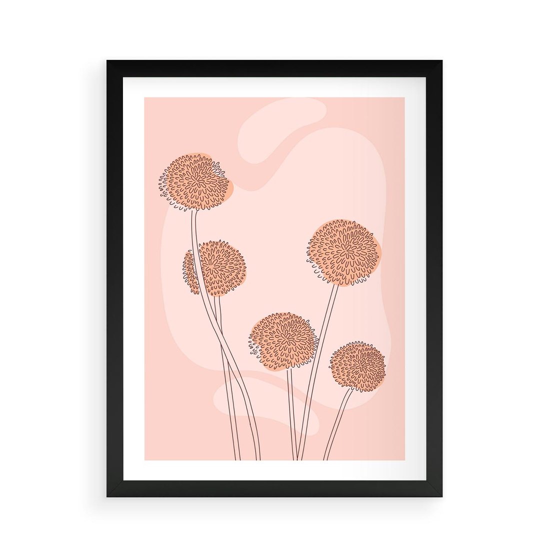 Plakat w ramie 50x70 - Rozkwitające Emocje - minimalistyczny plakat, pudrowe kwiaty - rama czarna