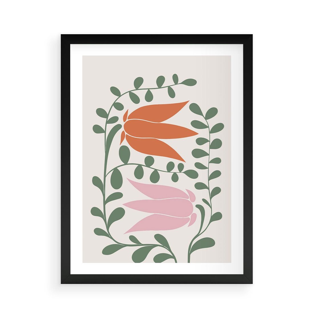 Plakat w ramie 50x70 - Rozkwitające Kontury - plakat, kwiaty - rama czarna
