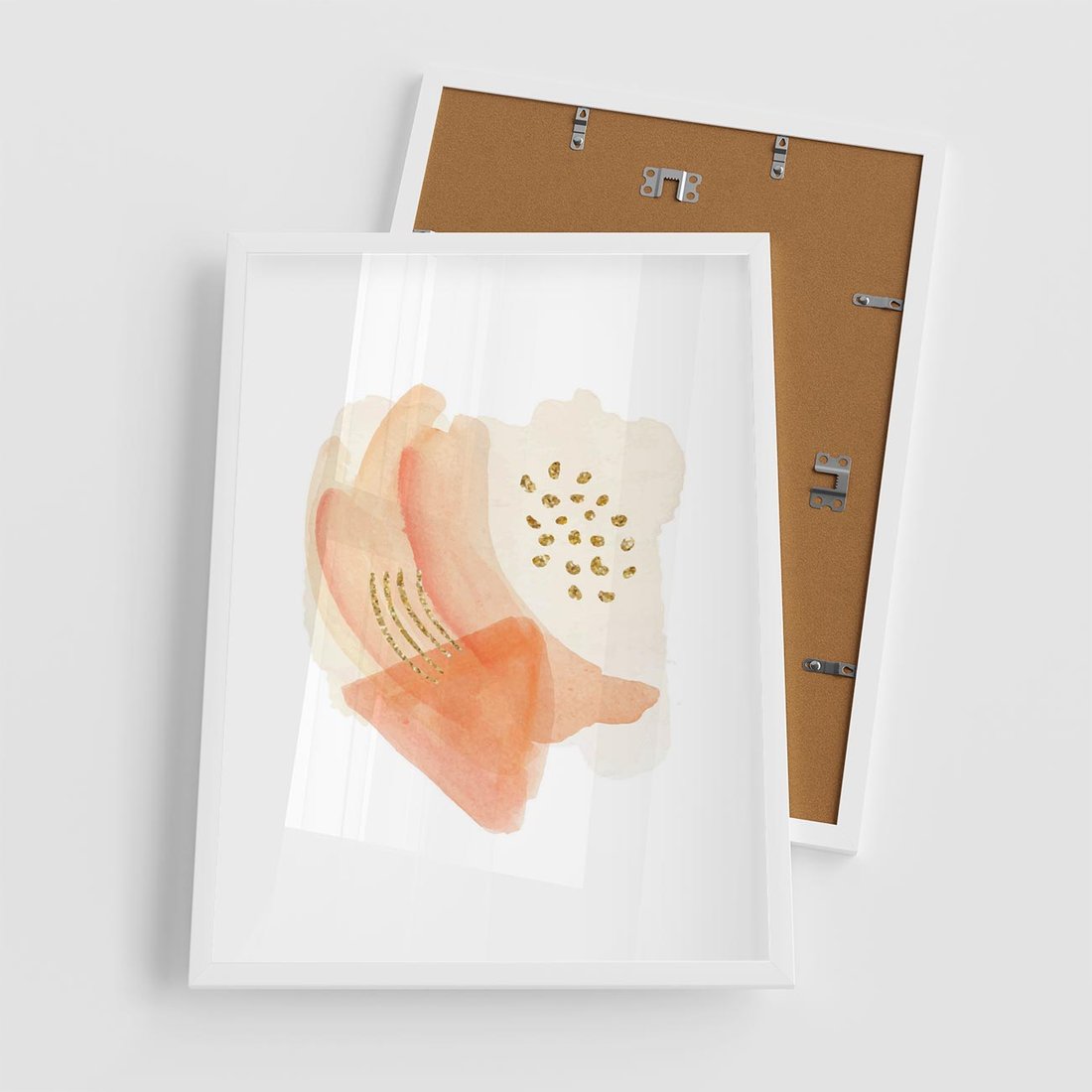 Abstrakcyjne akwarelowe plamy w minimalistycznym stylu. Subtelne pastele z nutą złotych elementów tworzą spokojną i wyrafinowaną kompozycję.