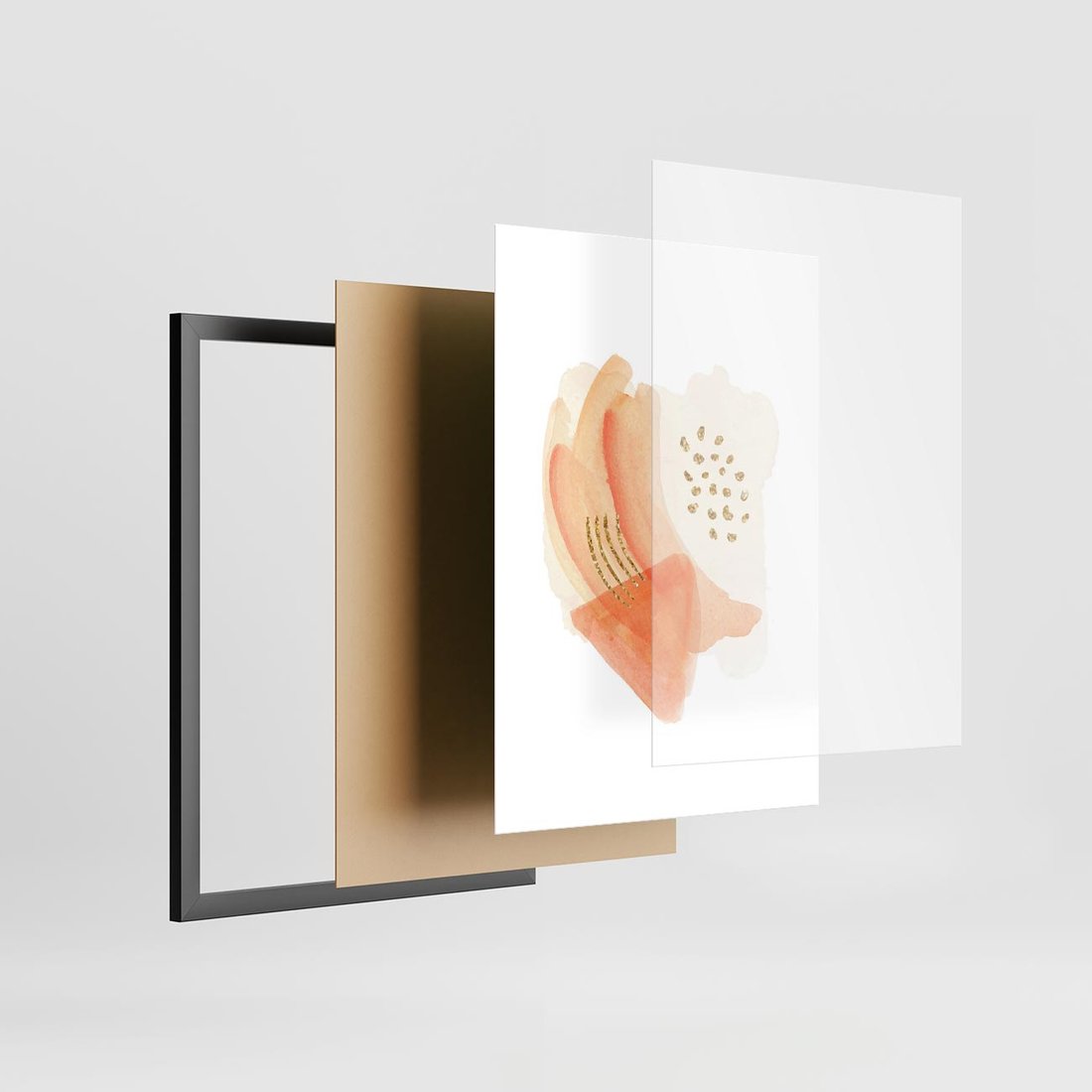 Plakat w ramie 50x70 - Rozkwitające Odbicia Form - abstrakcyjne akwarelowe plamy, minimalizm - rama czarna