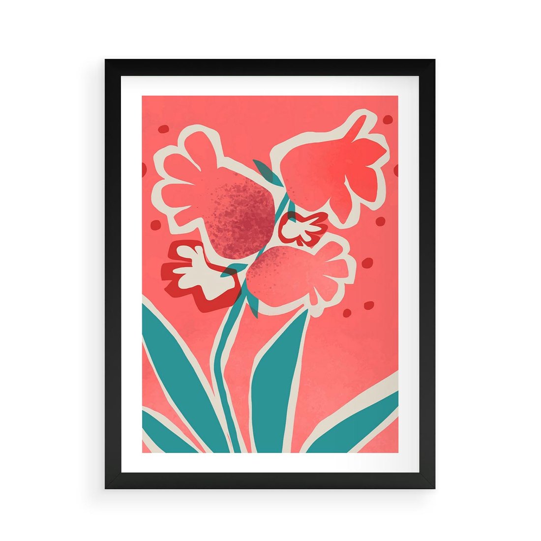 Plakat w ramie 50x70 - Rozkwitające Plamy i Formy - nowoczesny plakat, abstrakcyjne kwiaty - rama czarna