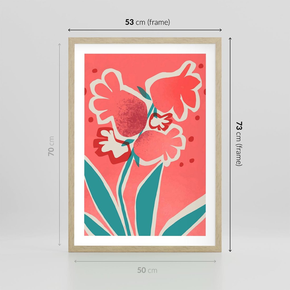 Plakat w ramie 50x70 - Rozkwitające Plamy i Formy - nowoczesny plakat, abstrakcyjne kwiaty - rama drewno