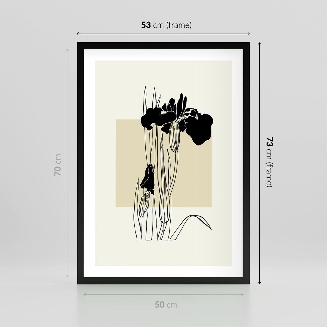 Plakat w ramie 50x70 - Rozkwitające w konturach - irys, kwiaty - rama czarna