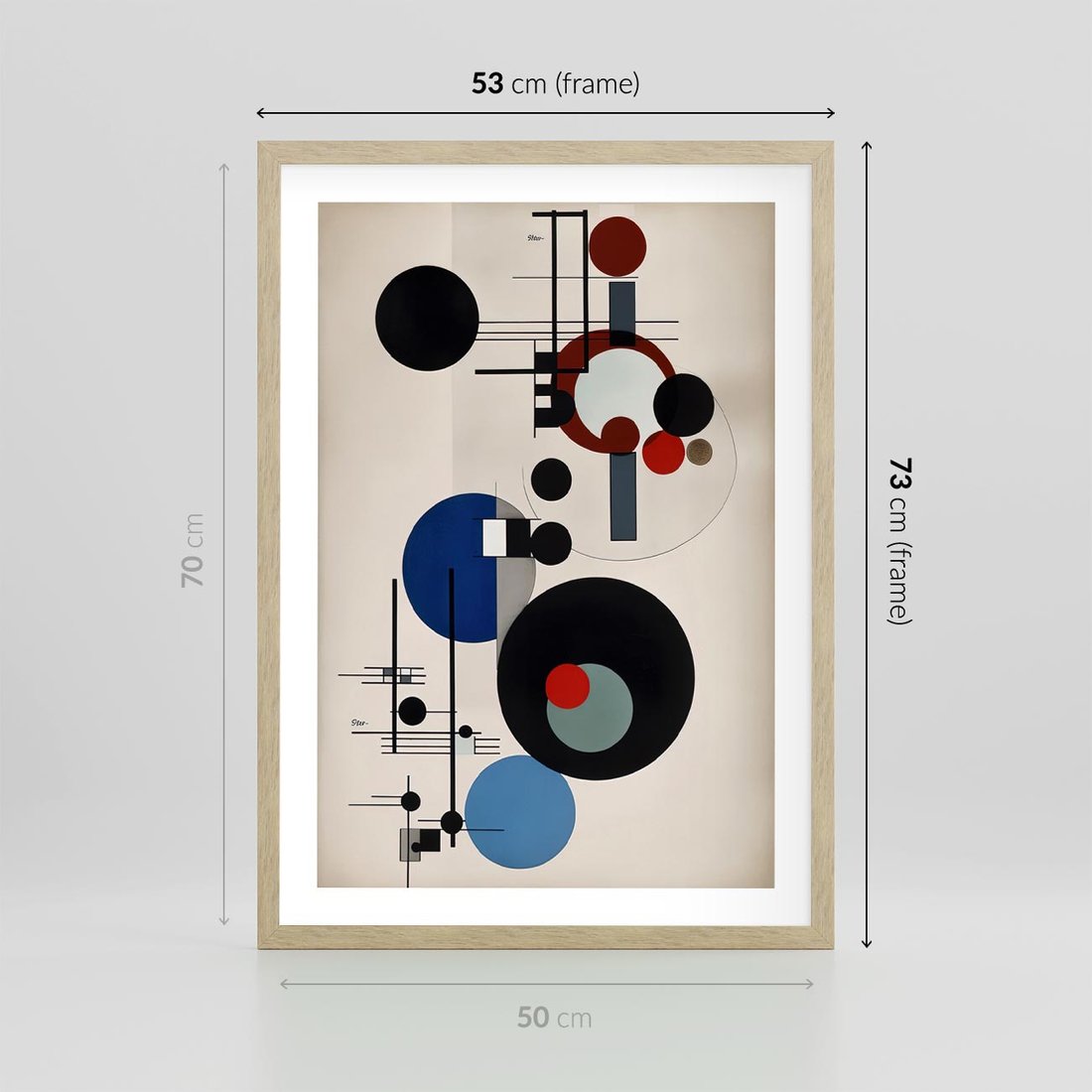 Plakat w ramie 50x70 - Rozkwitające Wibracje Wyobraźni - abstrakcyjna geometryczna kompozycja, koła linie - rama drewno