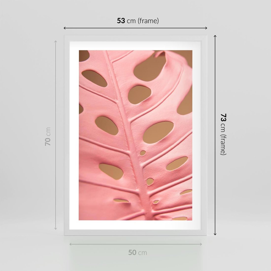 Plakat w ramie 50x70 - Różowa monstera w pełnym rozkwicie - różowa, monstera - rama biała