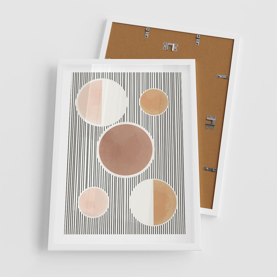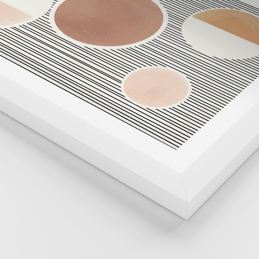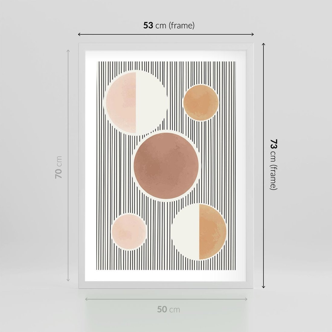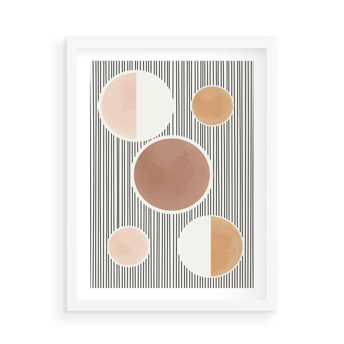 Plakat w ramie 50x70 - Rozplątane Granice - abstrakacyjna nowoczesna sztuka, koła okręgi - rama biała