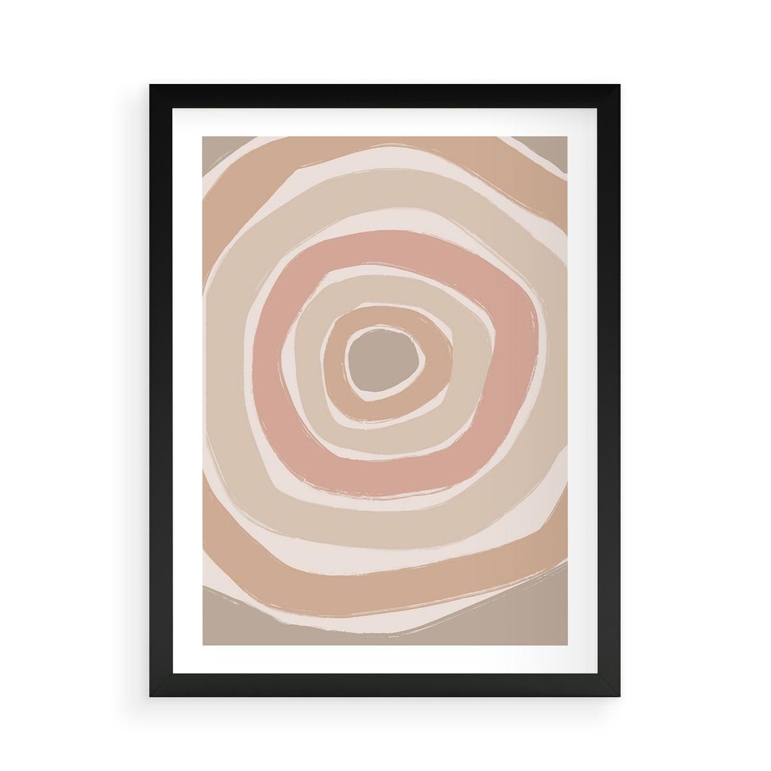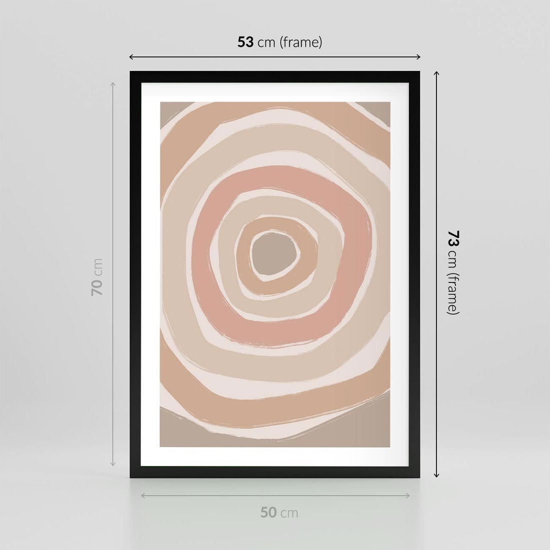 Plakat w ramie 50x70 - Roztopione Granice - abstakcyjne koła, delikatne odcienie beżu - rama czarna