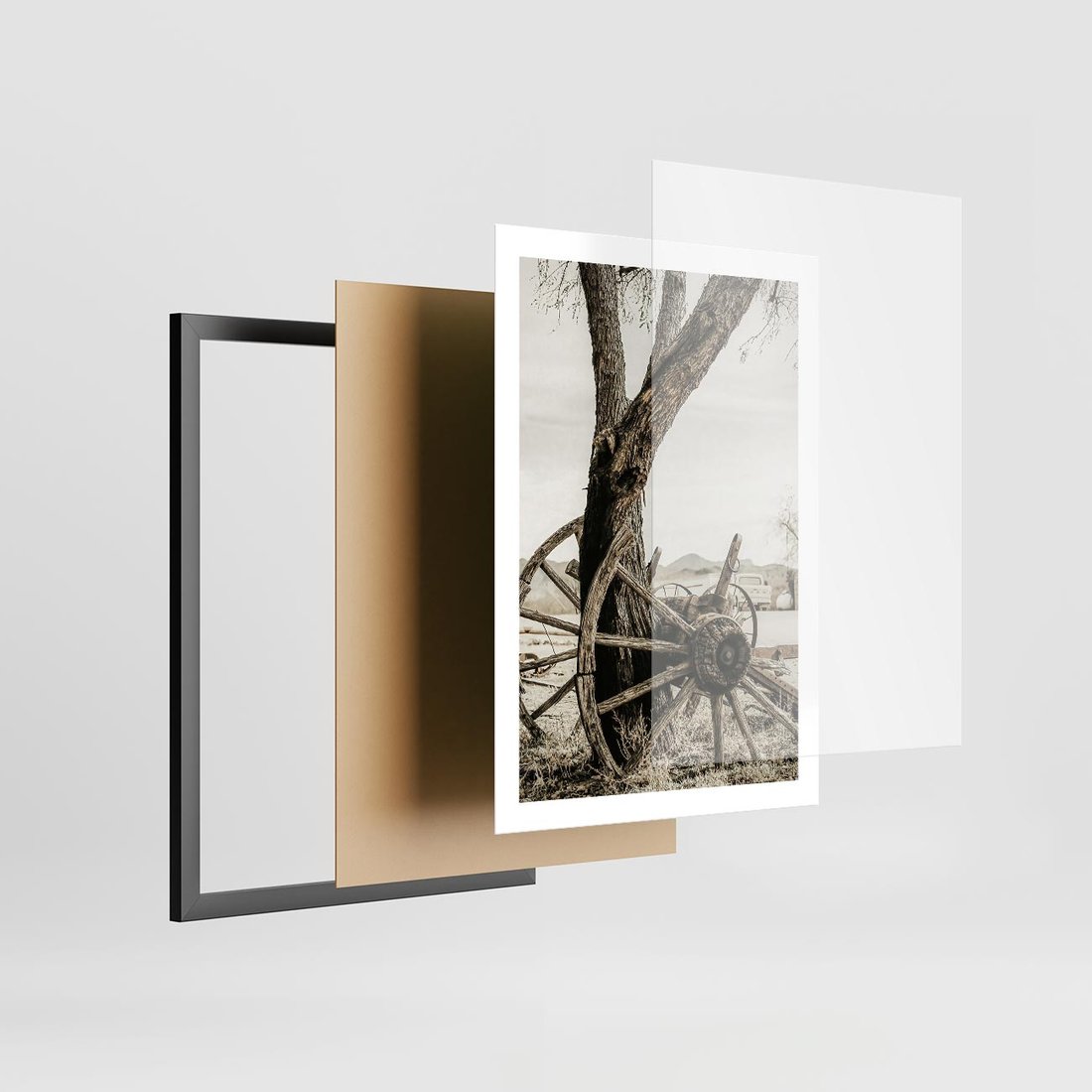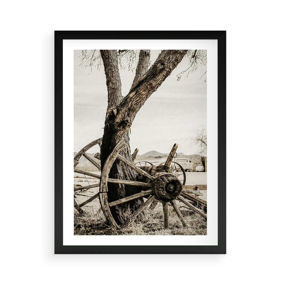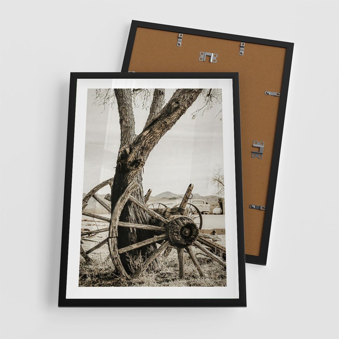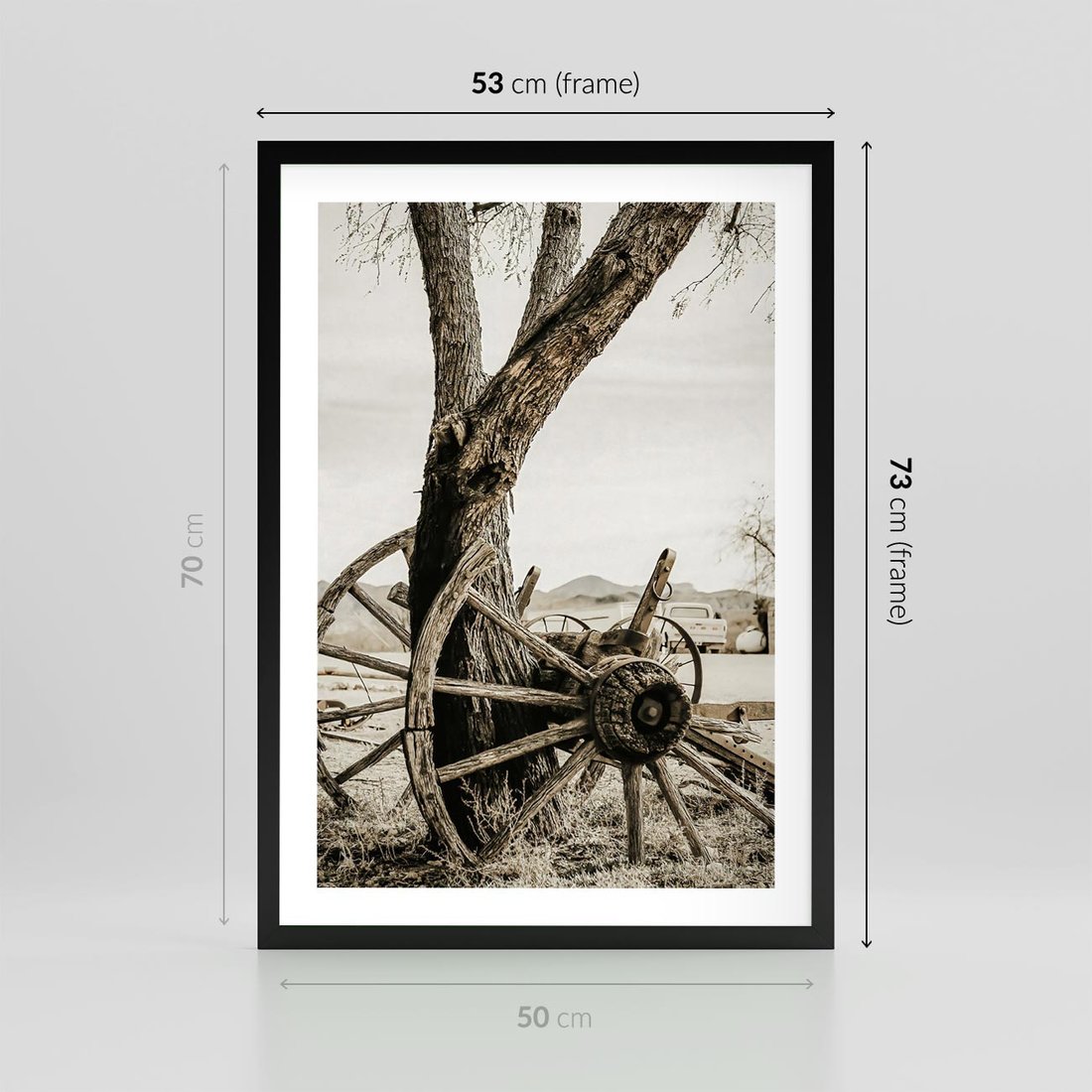 Plakat w ramie 50x70 - Rustykalna Tradycja - koło starego wozu, rustykalny styl - rama czarna