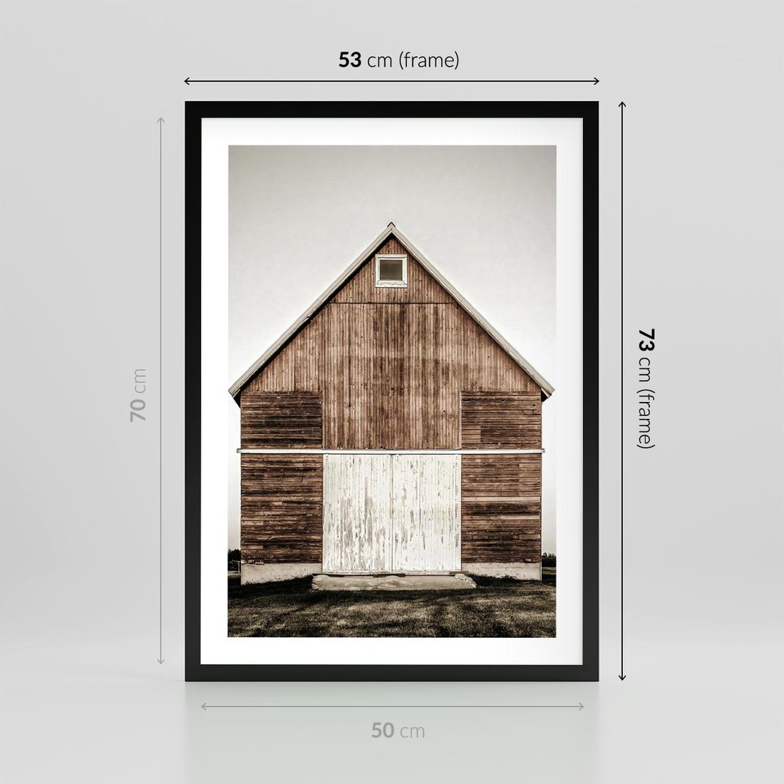 - Plakat w ramie 50x70 - Rustykalny Drewniany Domek