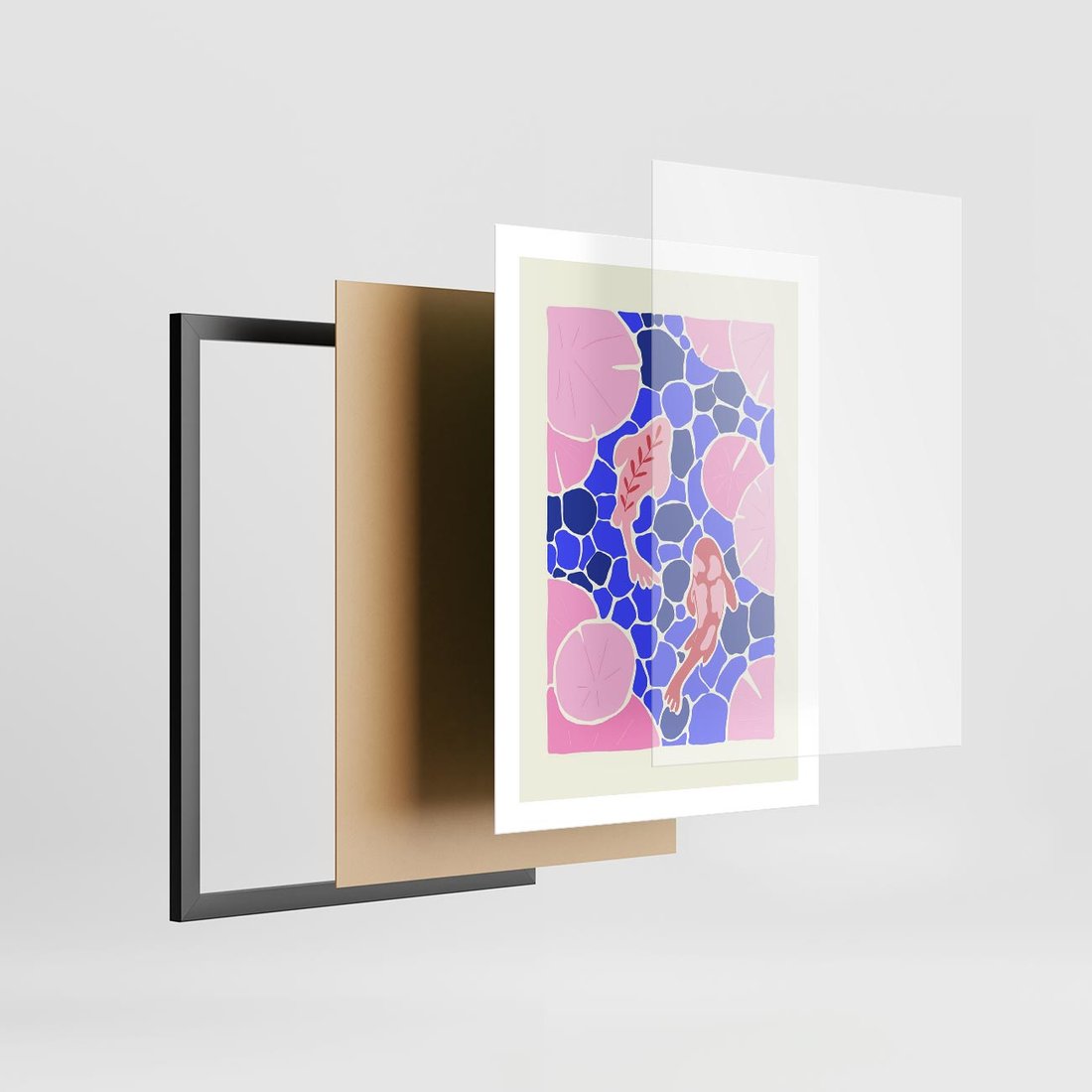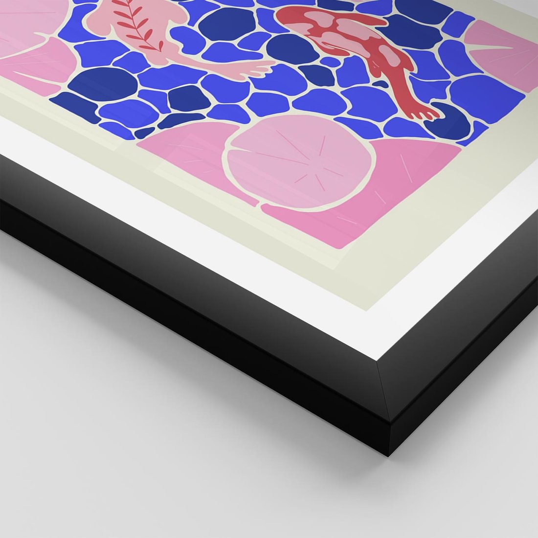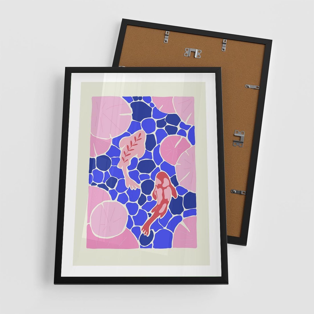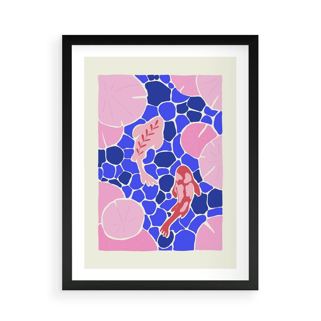 Plakat w ramie 50x70 - Rzeka Abstrakcji - abstrakcyjna kompozycja, różowe ryby wśród rafy - rama czarna