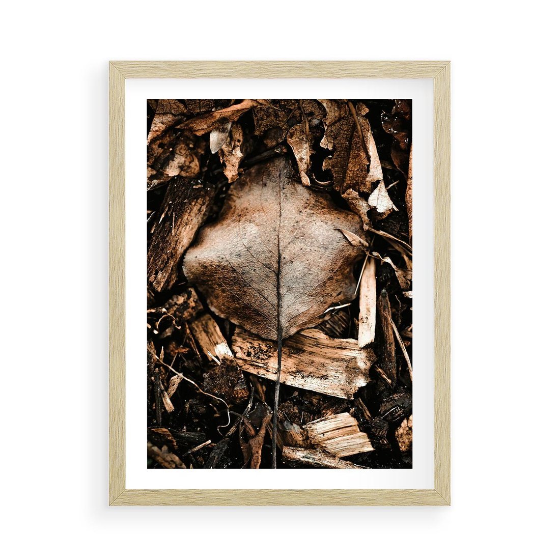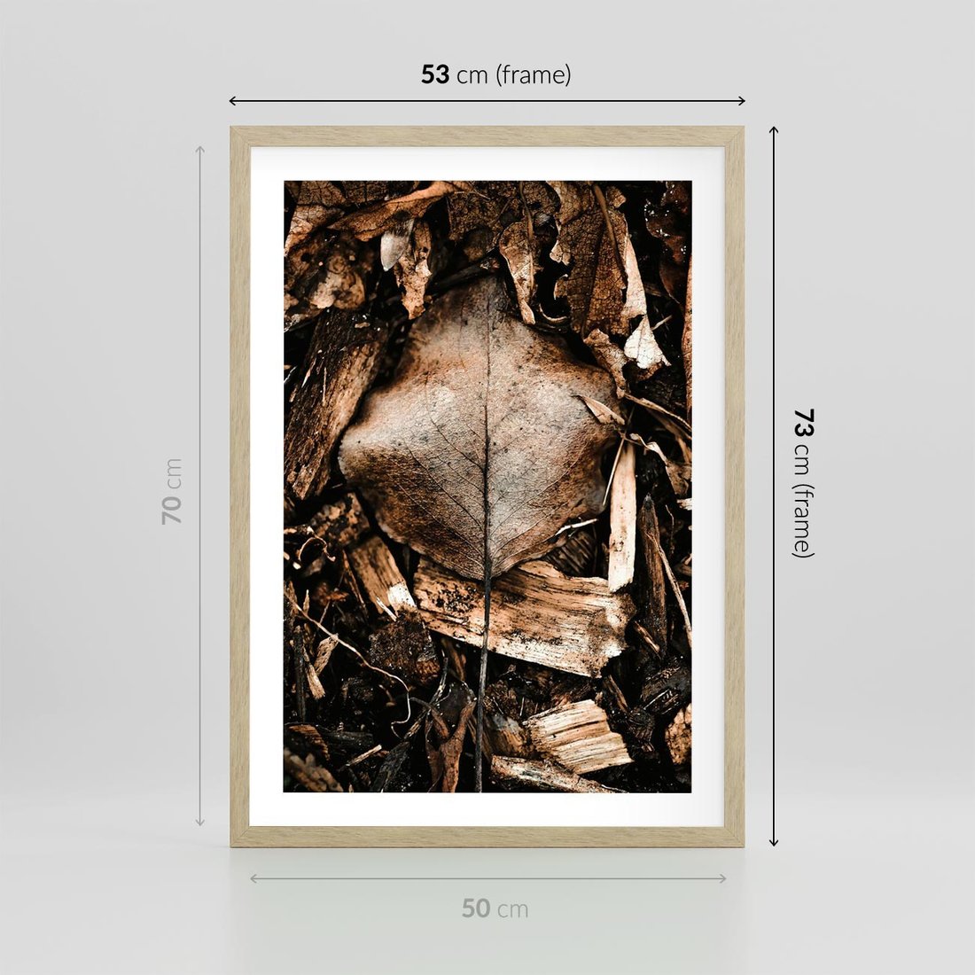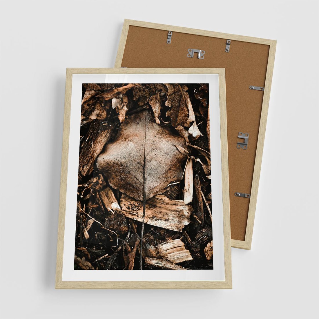 Plakat w ramie 50x70 - Samotny Liść - liść, brąz - rama drewno