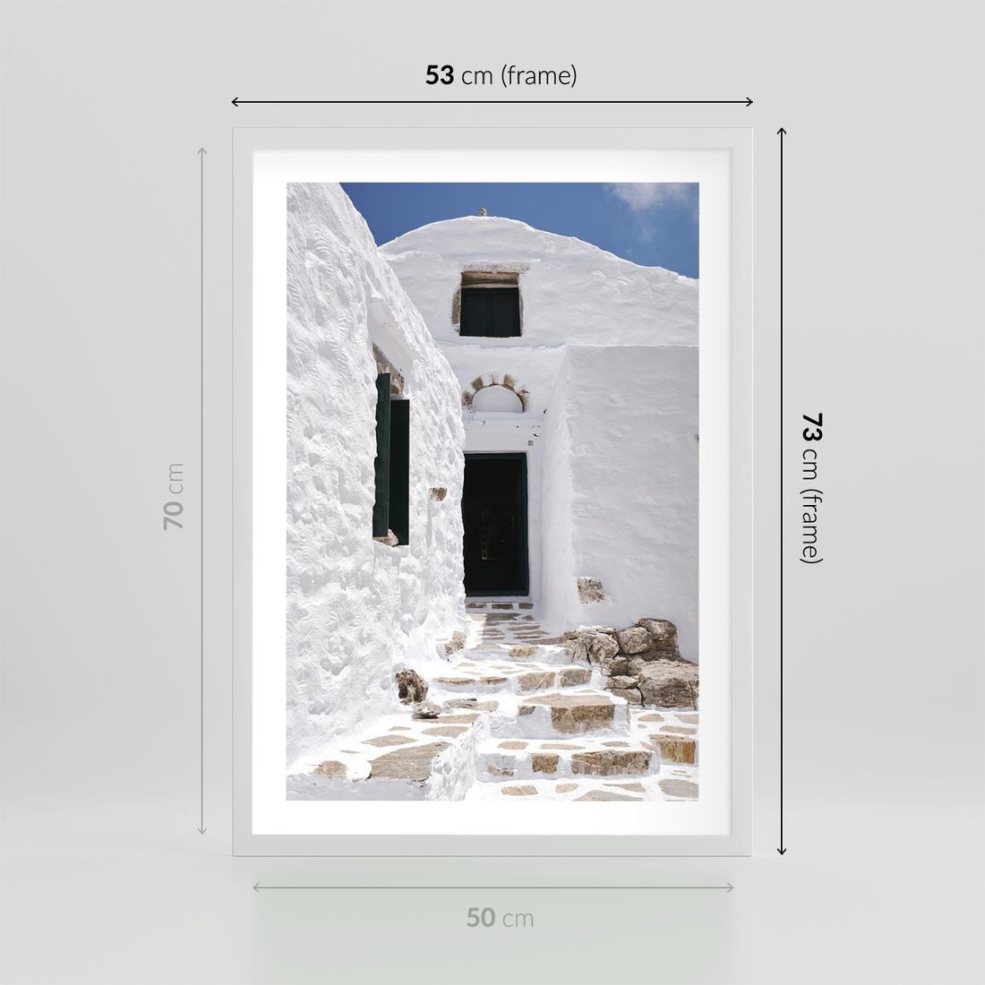 Plakat w ramie 50x70 - Santorini - Grecja błękitem malowana - Santorini, Grecja - rama biała