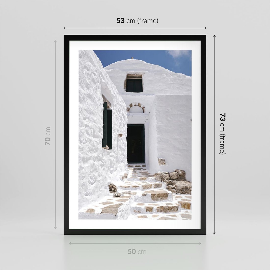 - Plakat w ramie 50x70 - Santorini - Grecja błękitem malowana