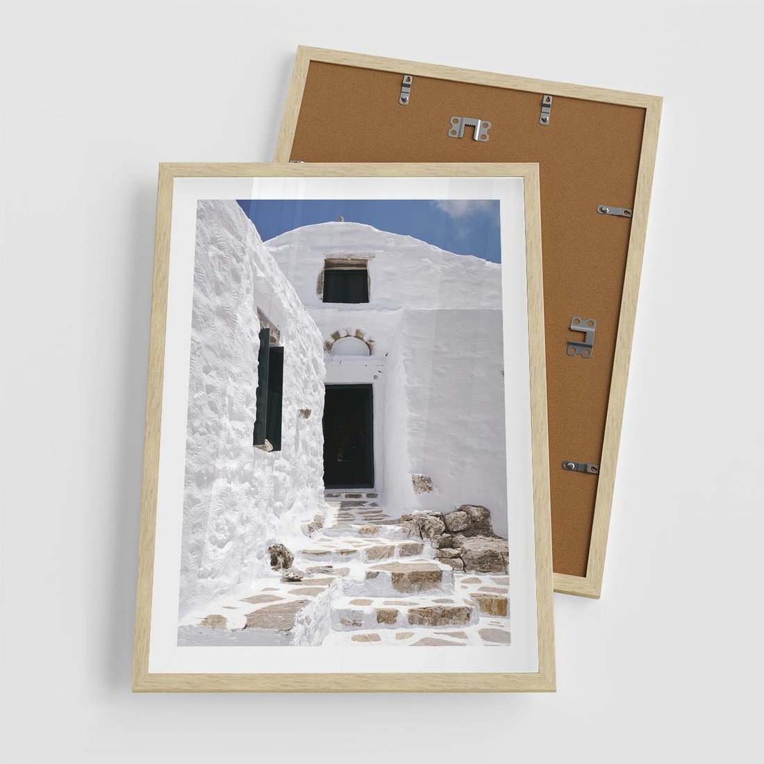 - Plakat w ramie 50x70 - Santorini - Grecja błękitem malowana