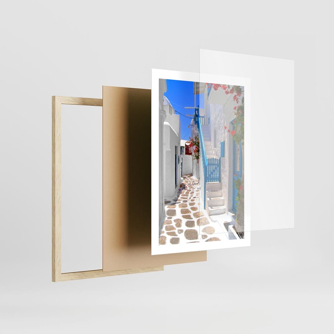 Plakat w ramie 50x70 - Santorini: urok Grecji - Santorini, Grecja - rama drewno