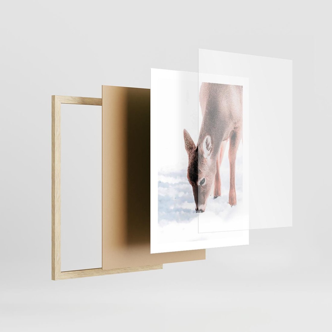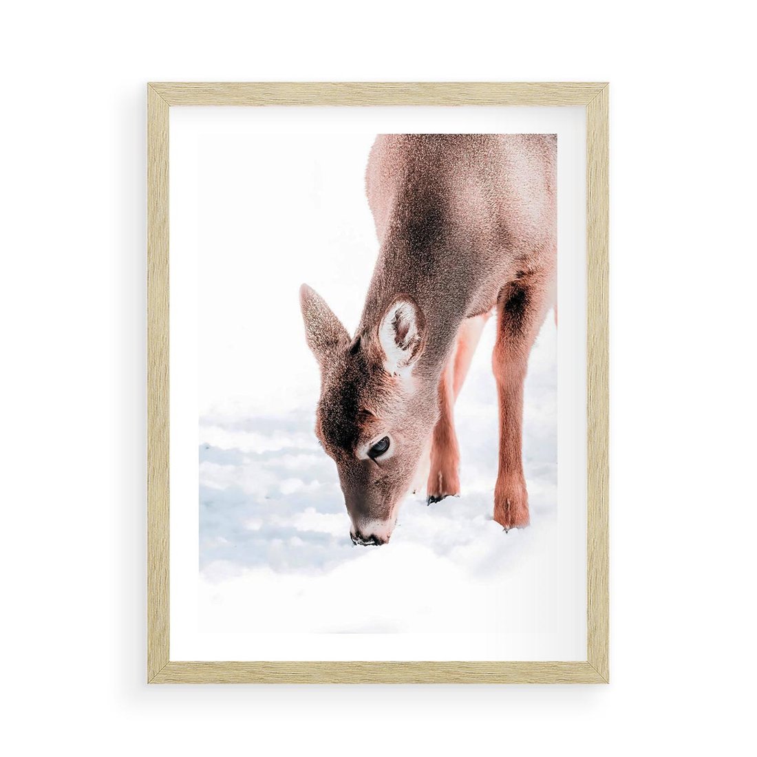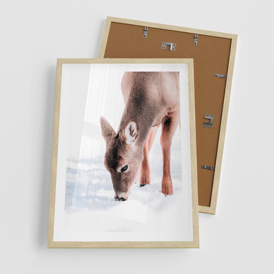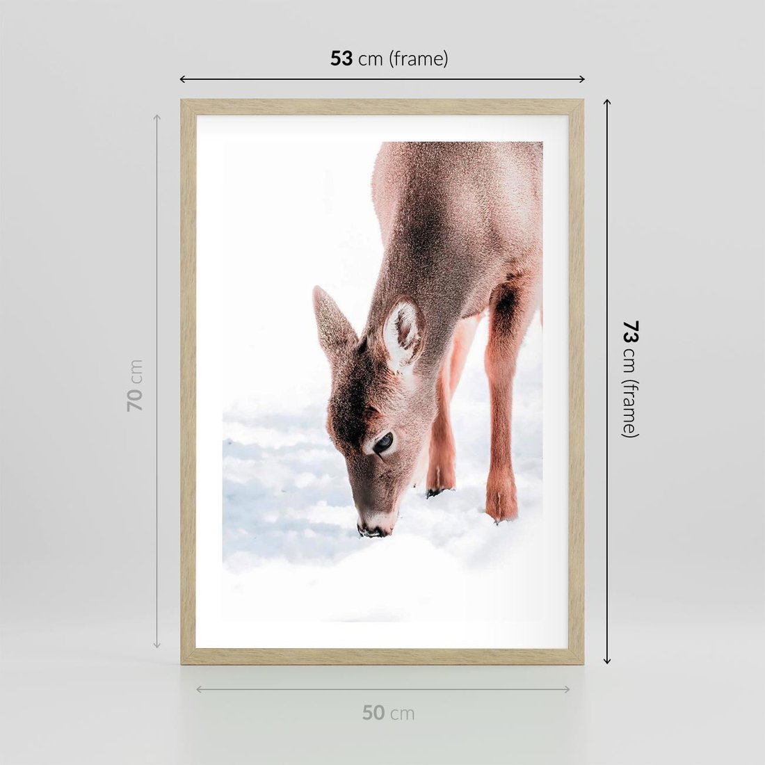 Plakat w ramie 50x70 - Sarna w Zimowym Raju - sarna, na śniegu - rama drewno