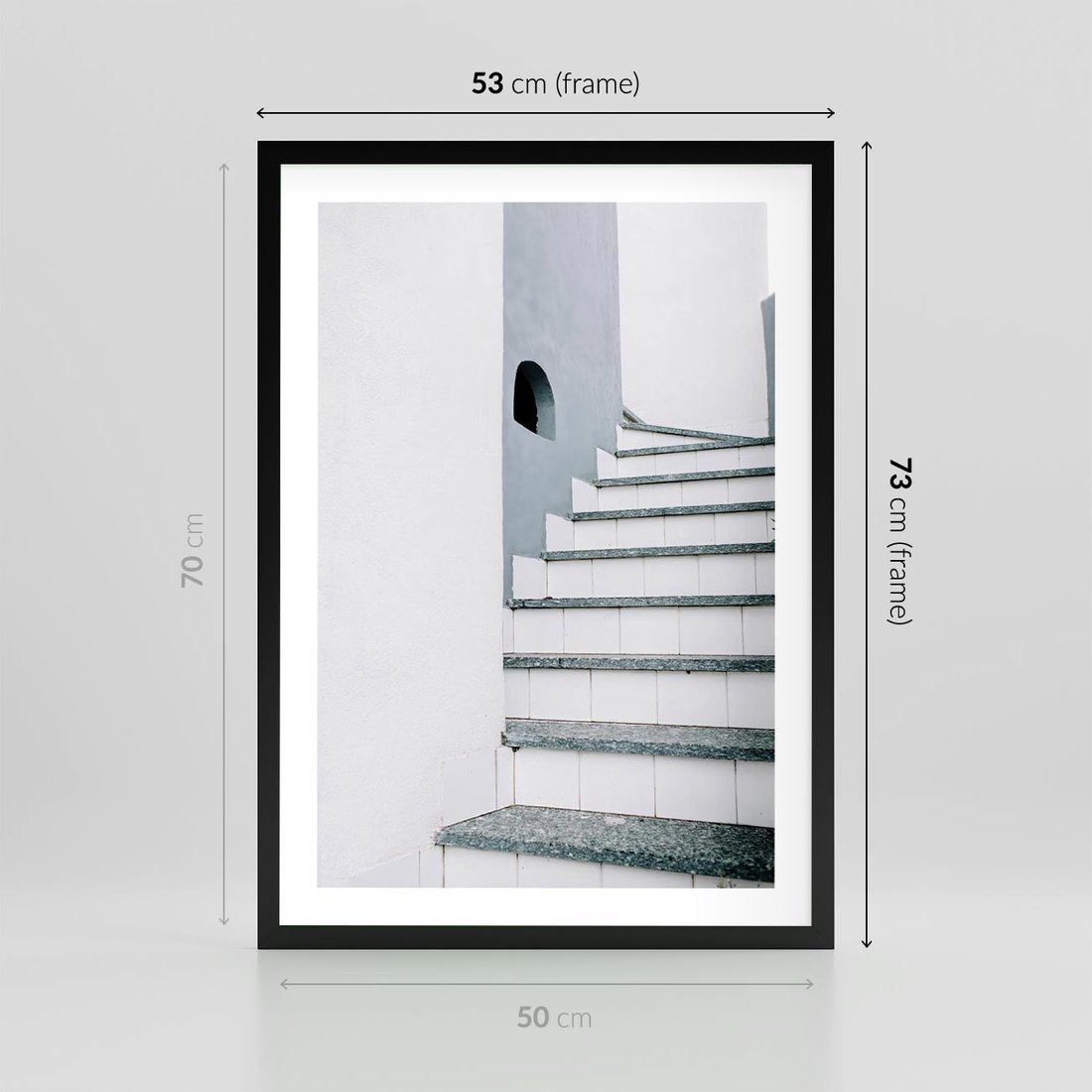 Plakat w ramie 50x70 - Schody ku Urokowi Wyspy - schody, santorini - rama czarna