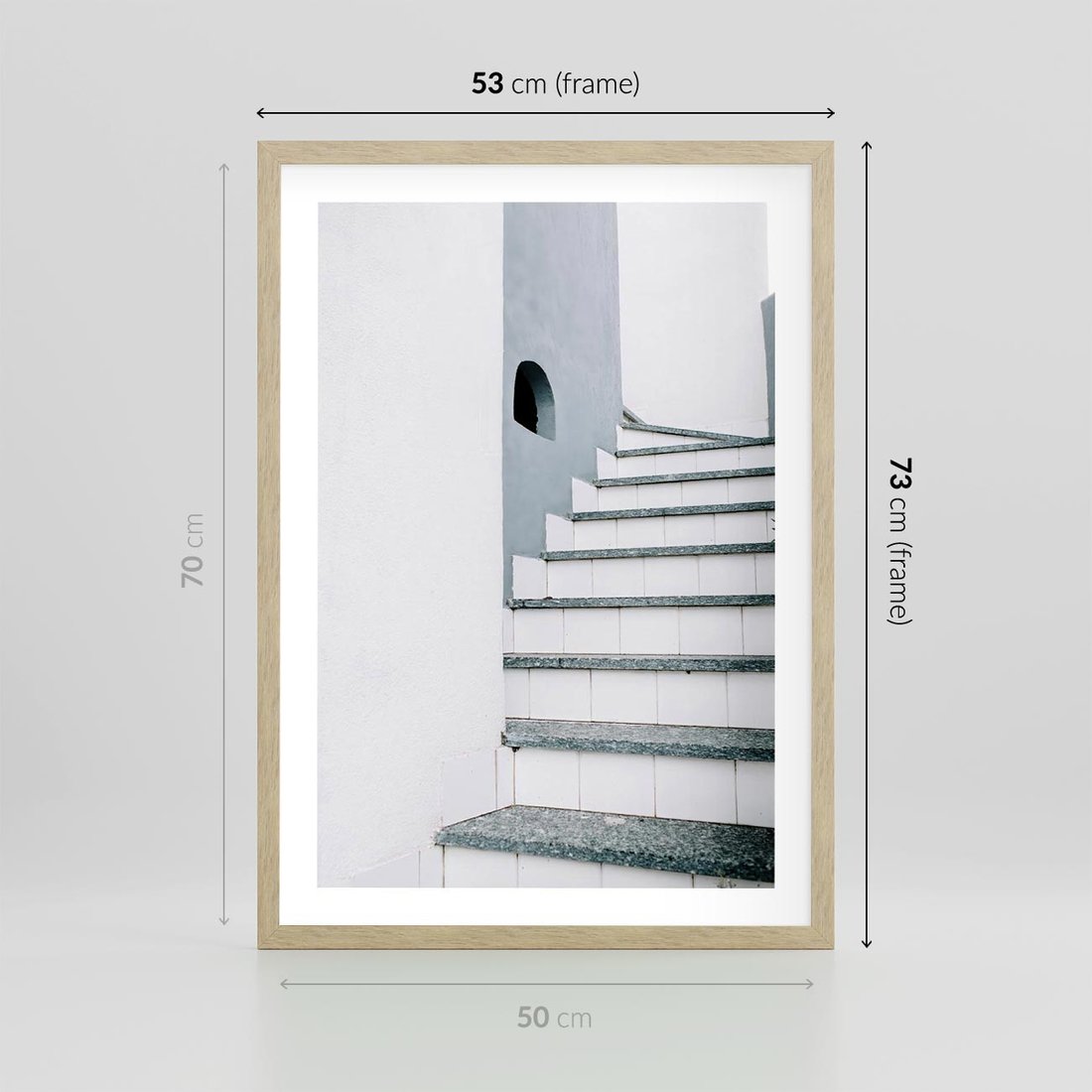 Plakat w ramie 50x70 - Schody ku Urokowi Wyspy - schody, santorini - rama drewno