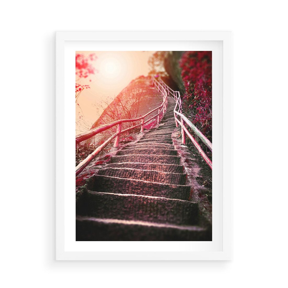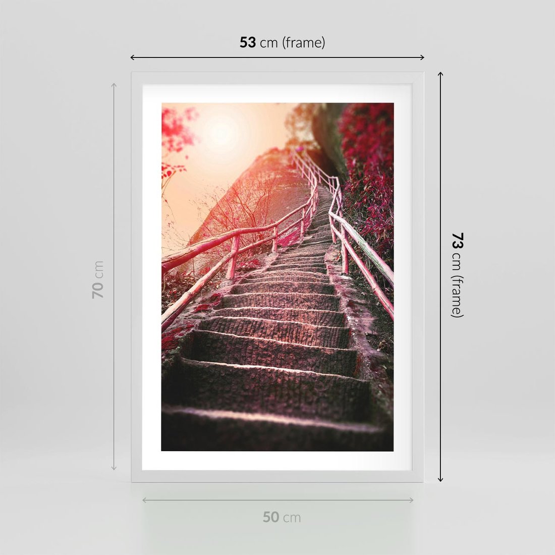 Plakat w ramie 50x70 - Schody prowadzące do nieznanych ścieżek - schody, ścieżka - rama biała
