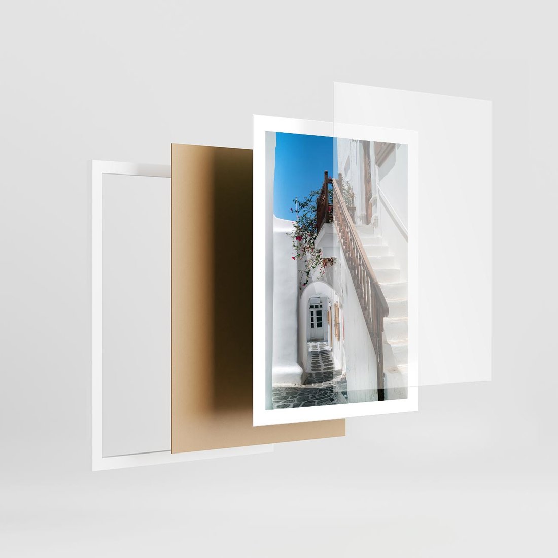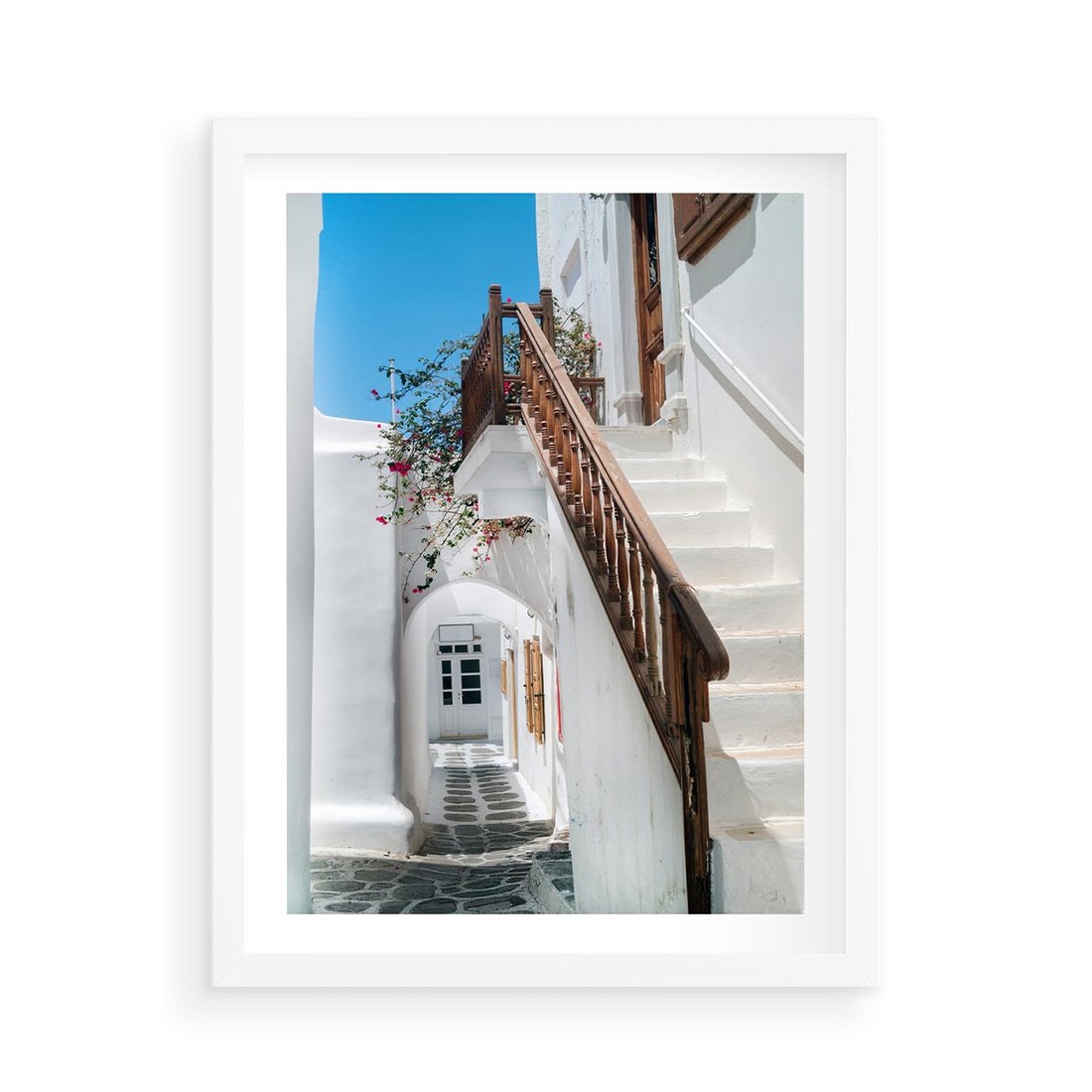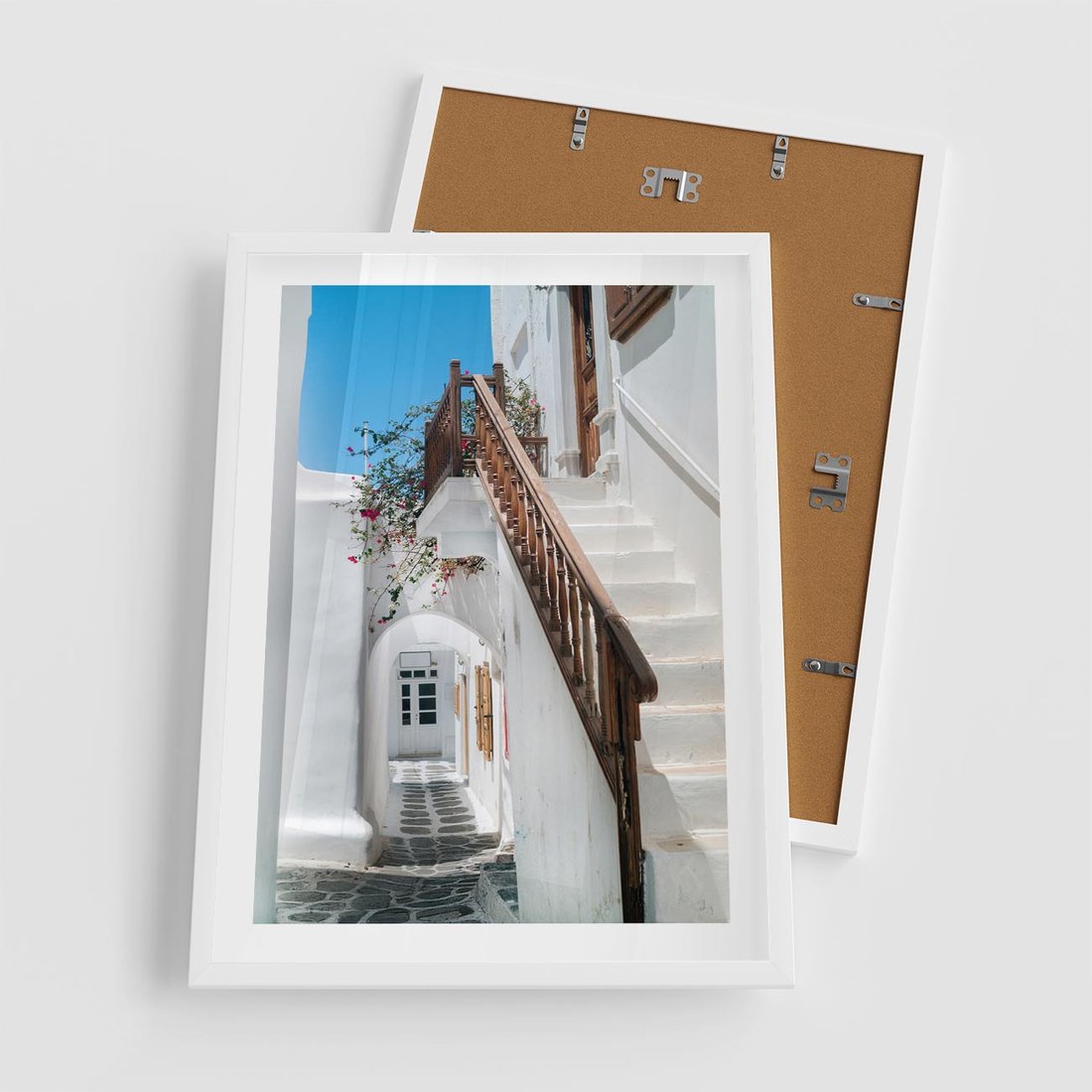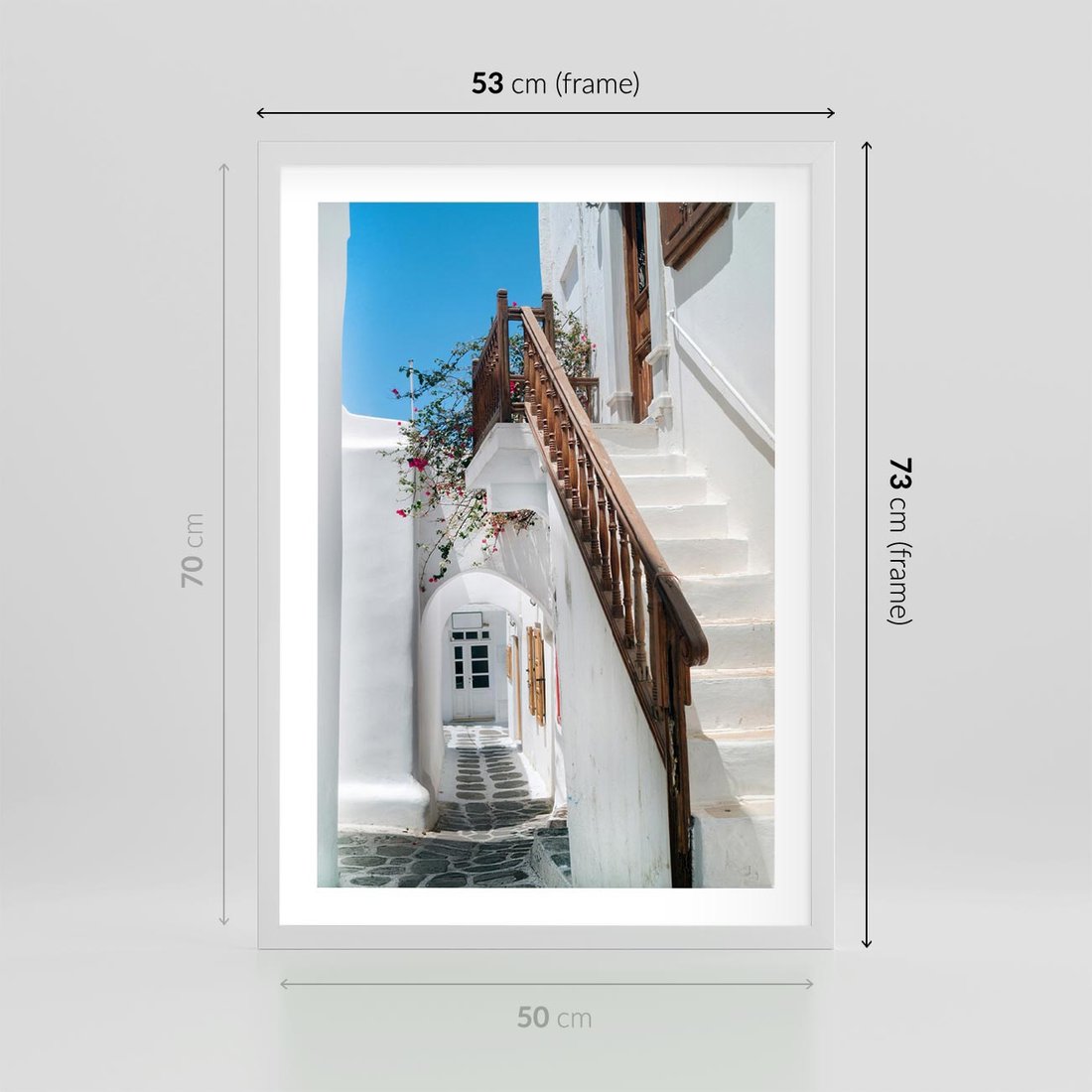 Plakat w ramie 50x70 - Schody Uliczką W dół - schody, uliczka - rama biała