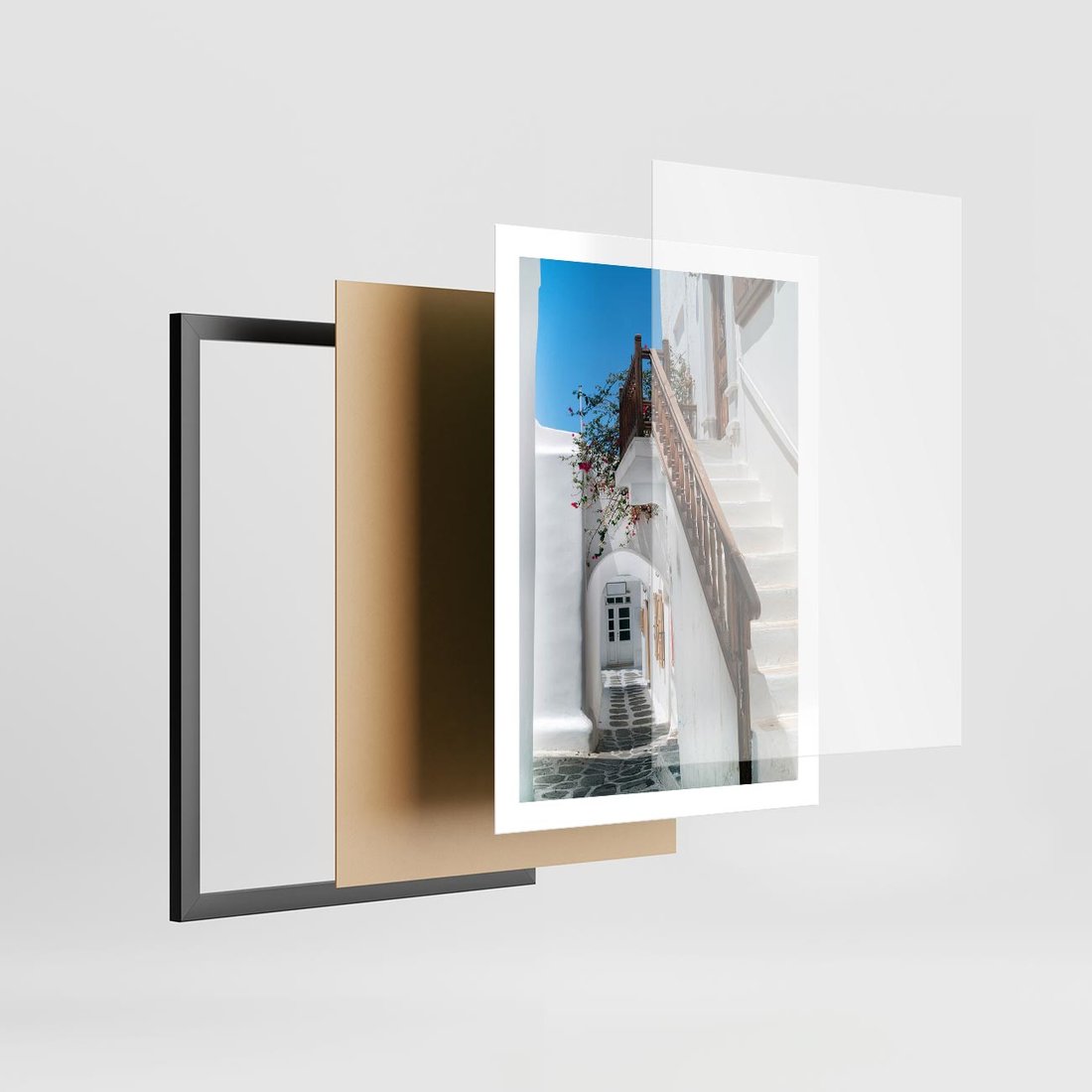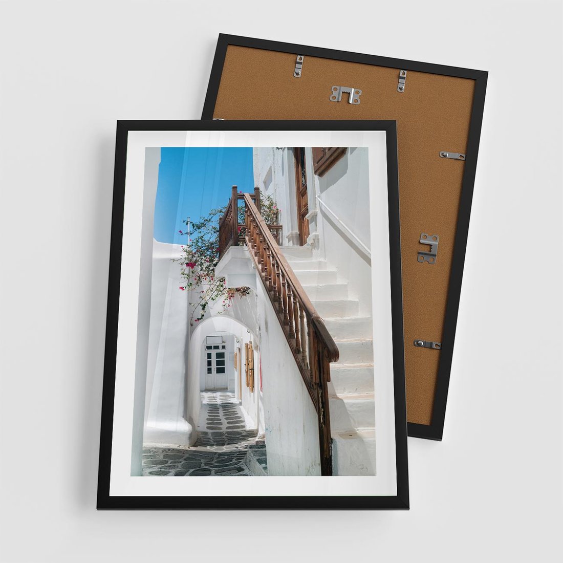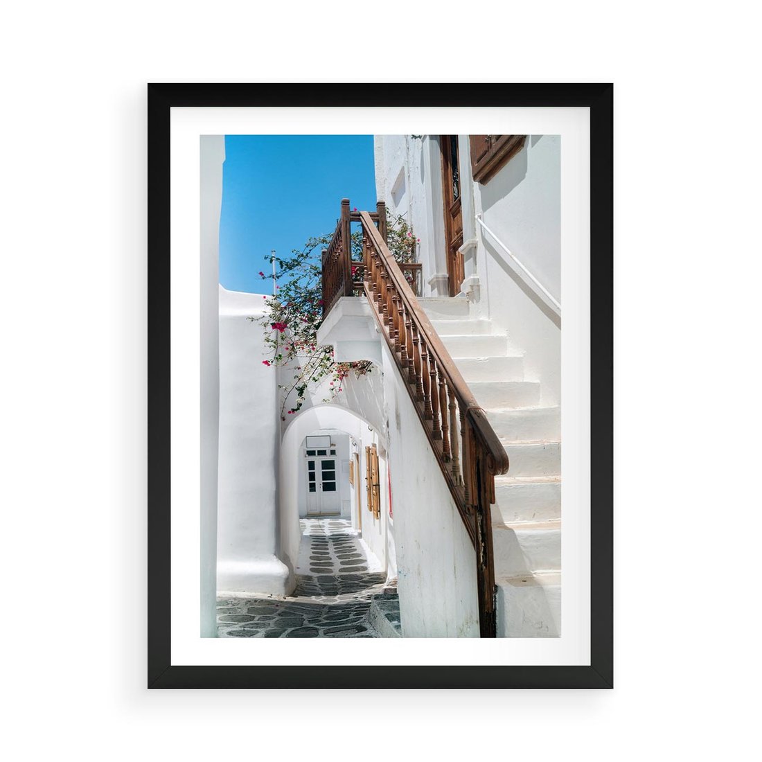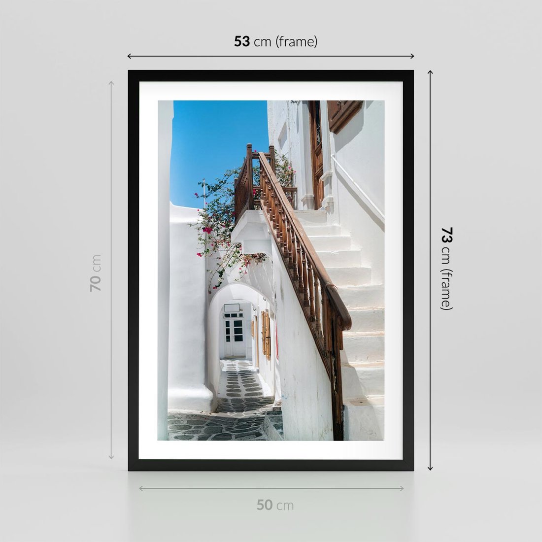 Plakat w ramie 50x70 - Schody Uliczką W dół - schody, uliczka - rama czarna