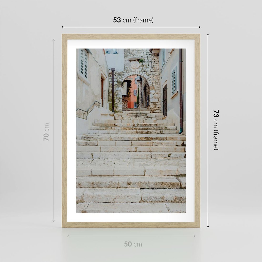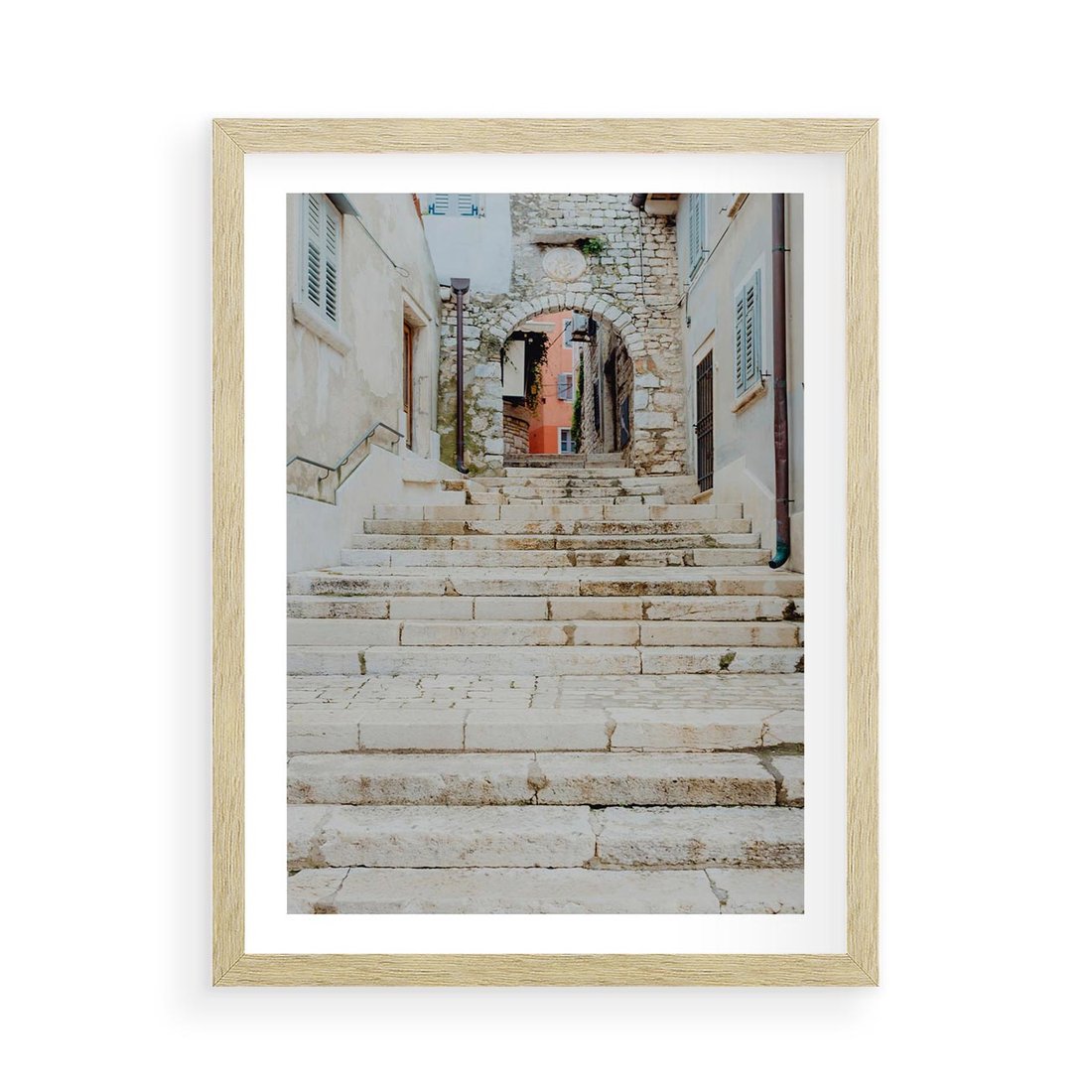 Plakat w ramie 50x70 - Schody we Włoskim Miasteczku - schody, śródziemnomorskie miasteczko - rama drewno