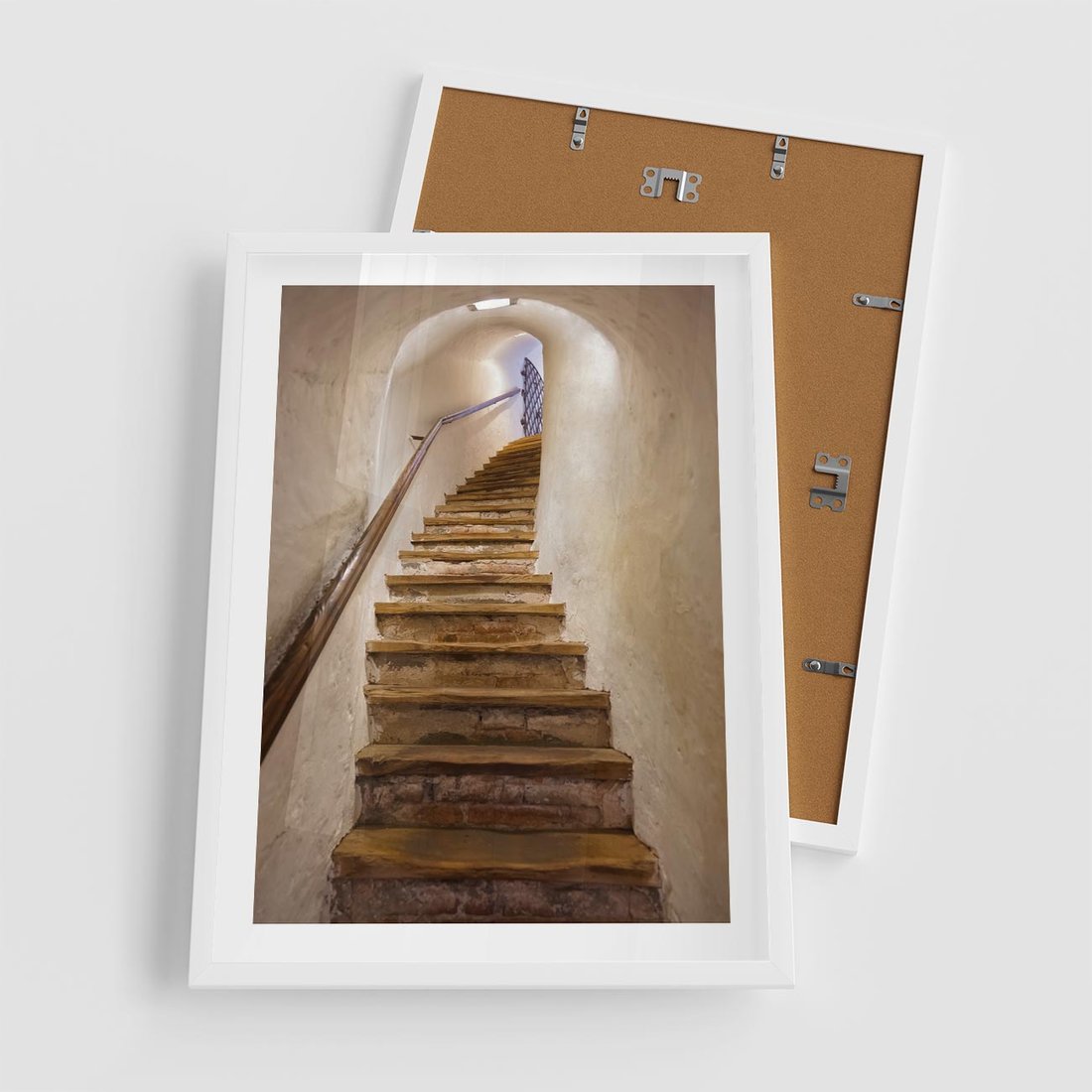 Plakat w ramie 50x70 - Schody Wymiarów - schody, tunel - rama biała