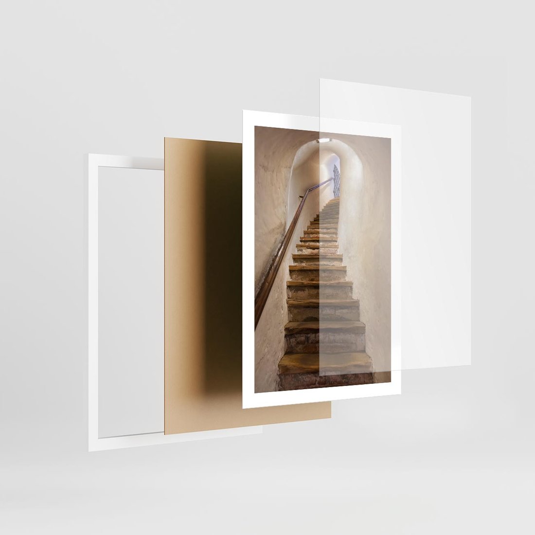Odkryj fascynujący tunel schodów na tym zaskakującym obrazie. Jego perspektywa i kontrastujące światła tworzą aurę tajemniczości i głębi. Ta kompozycja dodaje dynamiki i perspektywy, idealna dla miłośników abstrakcji i zagadkowych kompozycji.