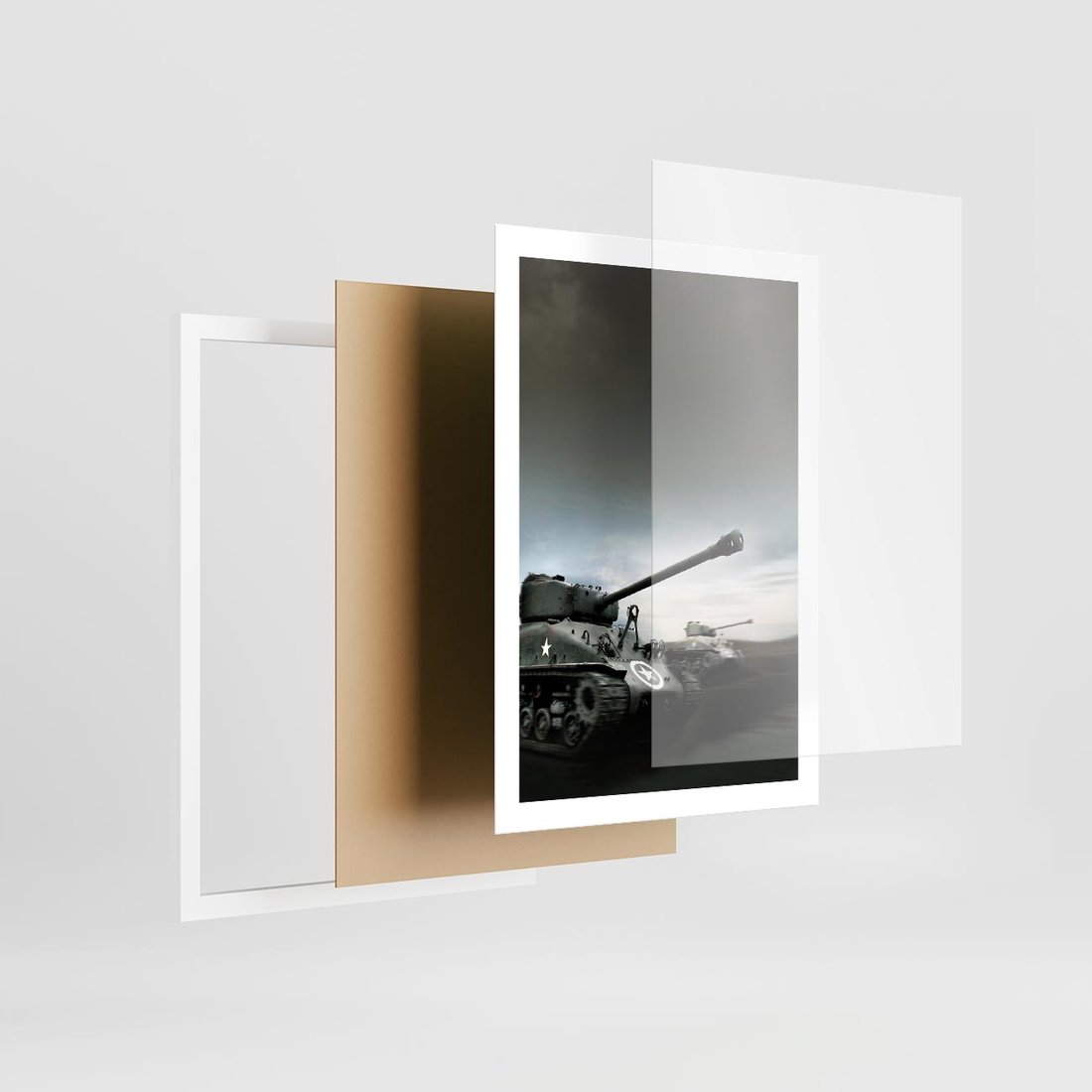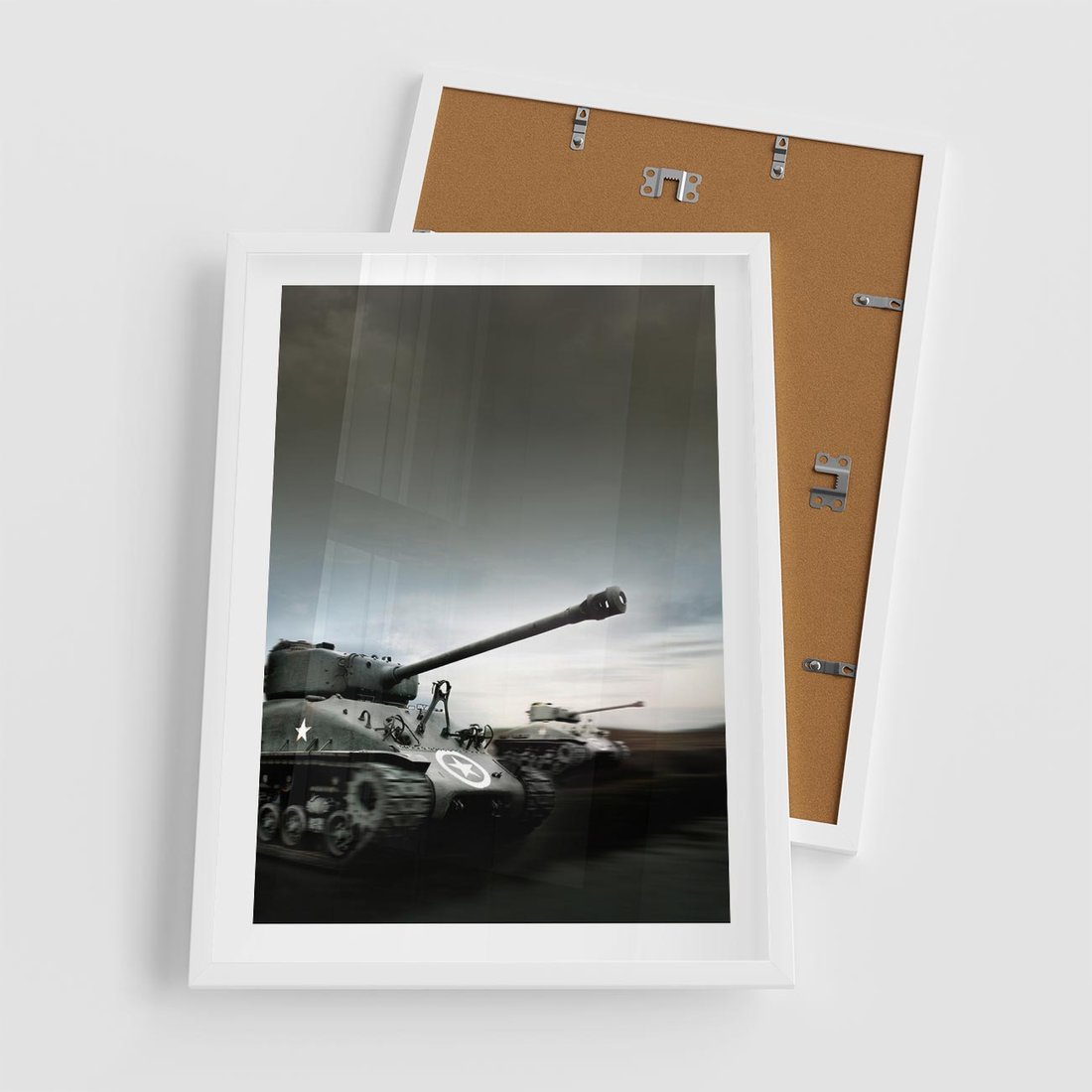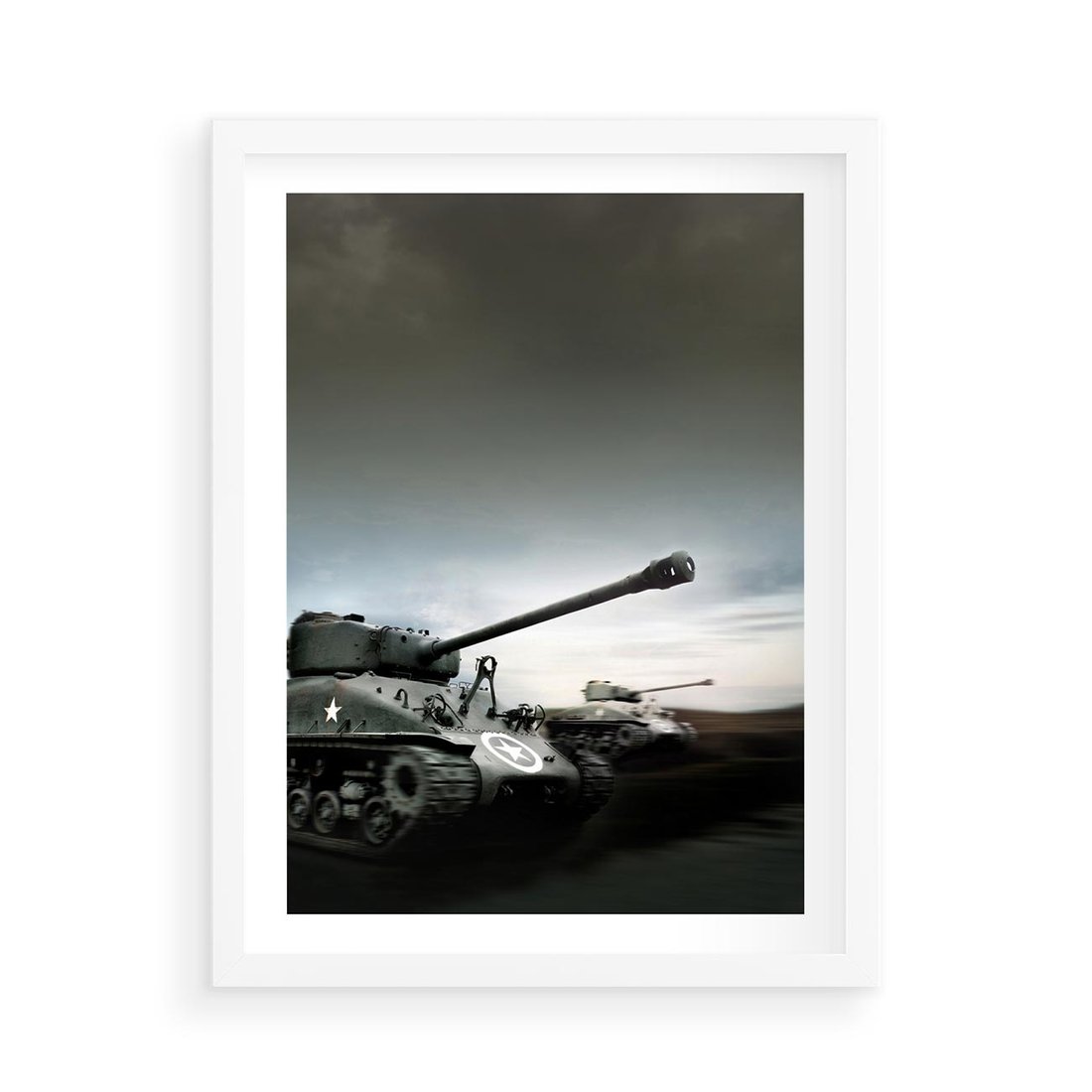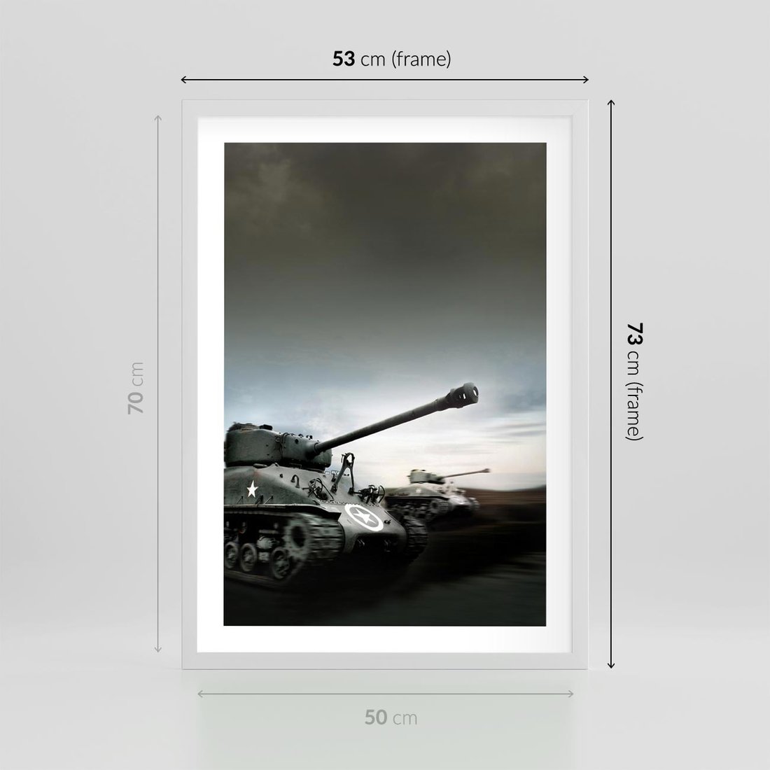 Plakat w ramie 50x70 - Siła i determinacja: czołgi wojenne - czołgi, wojna - rama biała