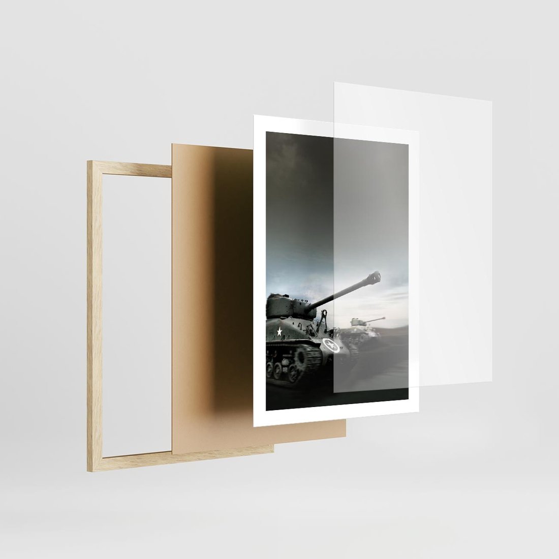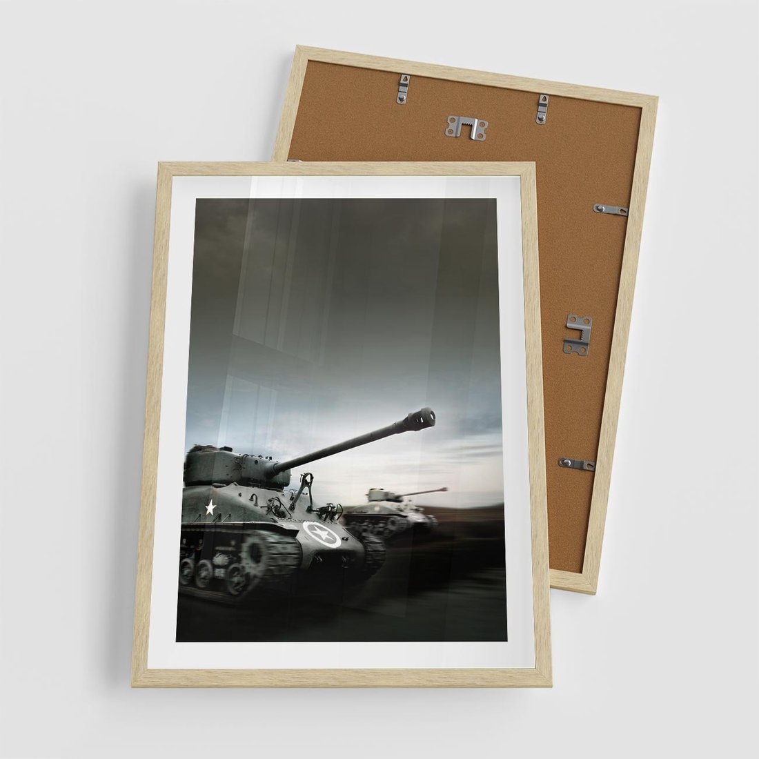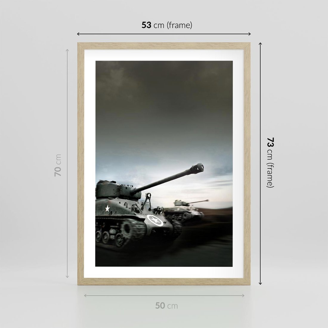Plakat w ramie 50x70 - Siła i determinacja: czołgi wojenne - czołgi, wojna - rama drewno