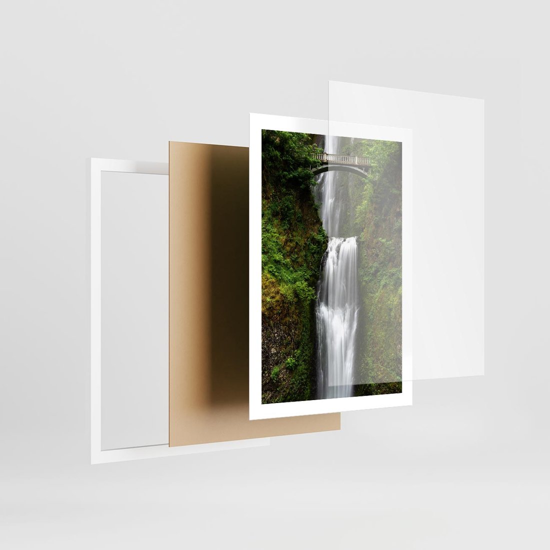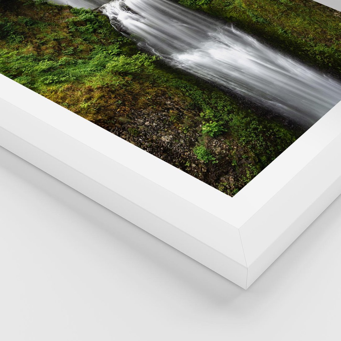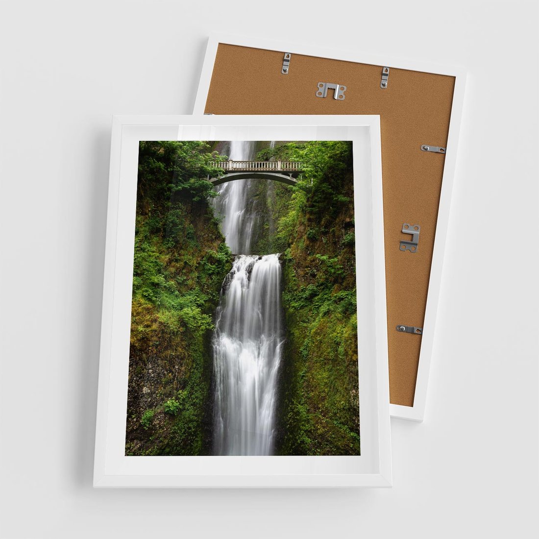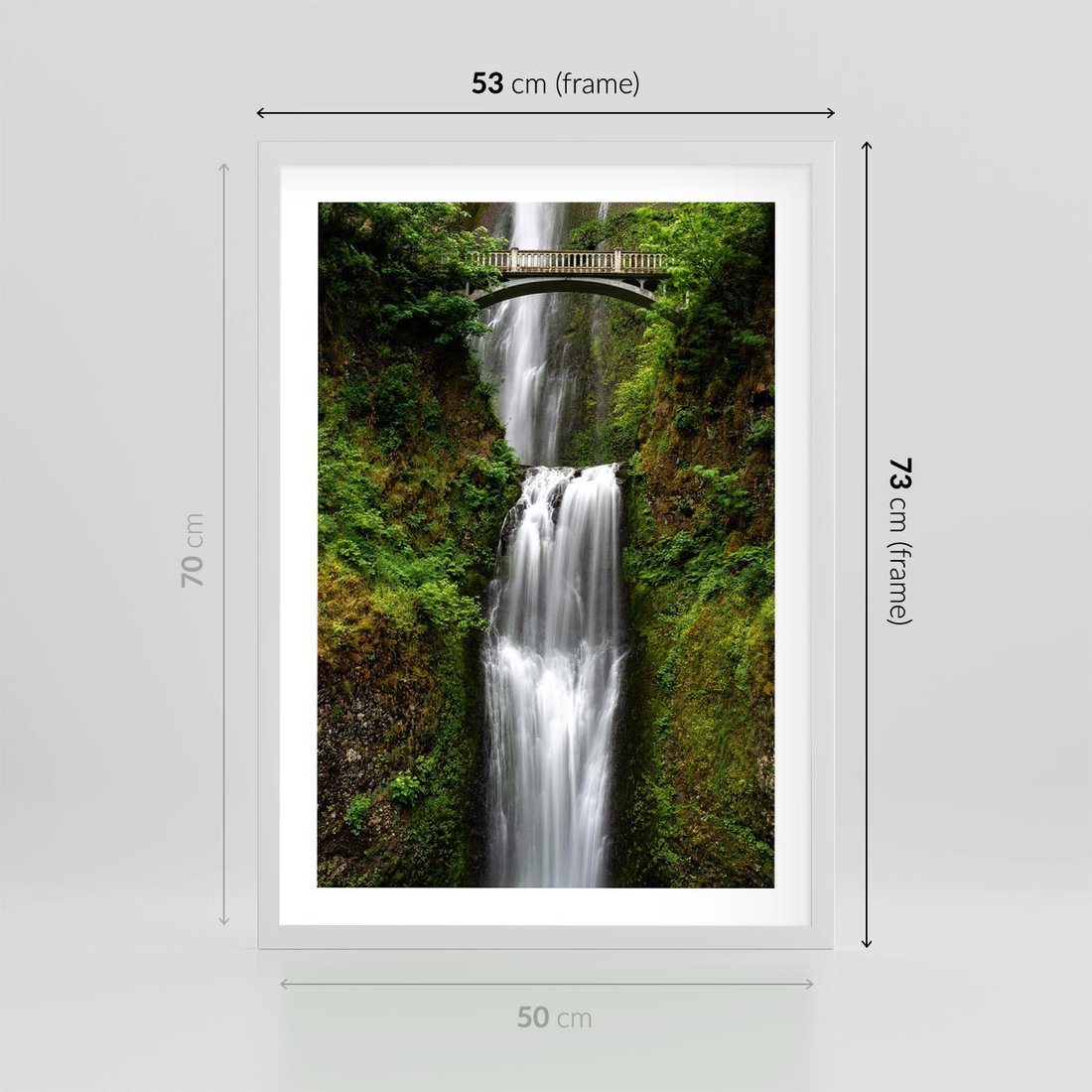 Plakat w ramie 50x70 - Siła i Urok Natury - wodospad, las - rama biała