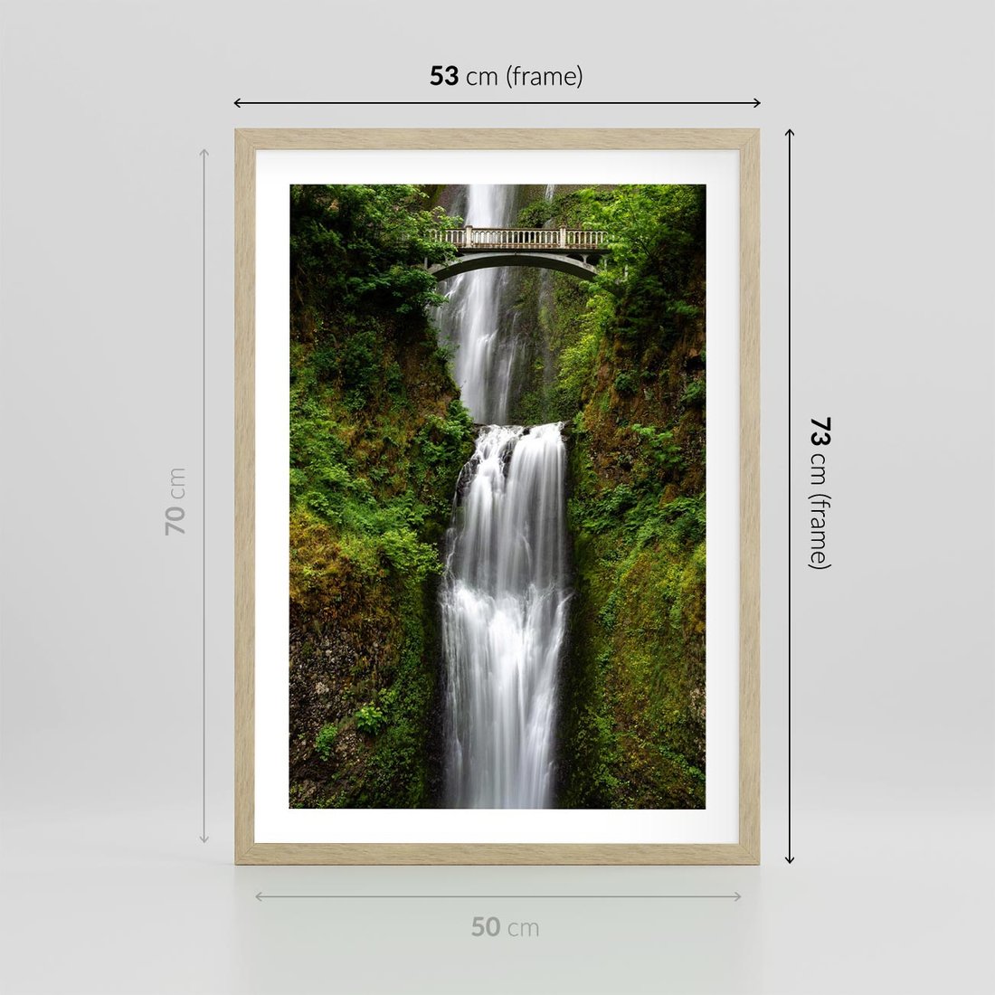 Plakat w ramie 50x70 - Siła i Urok Natury - wodospad, las - rama drewno