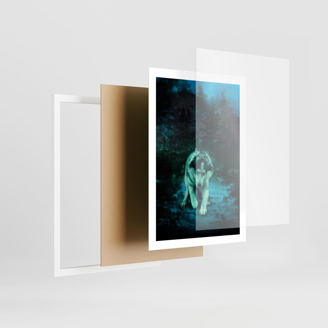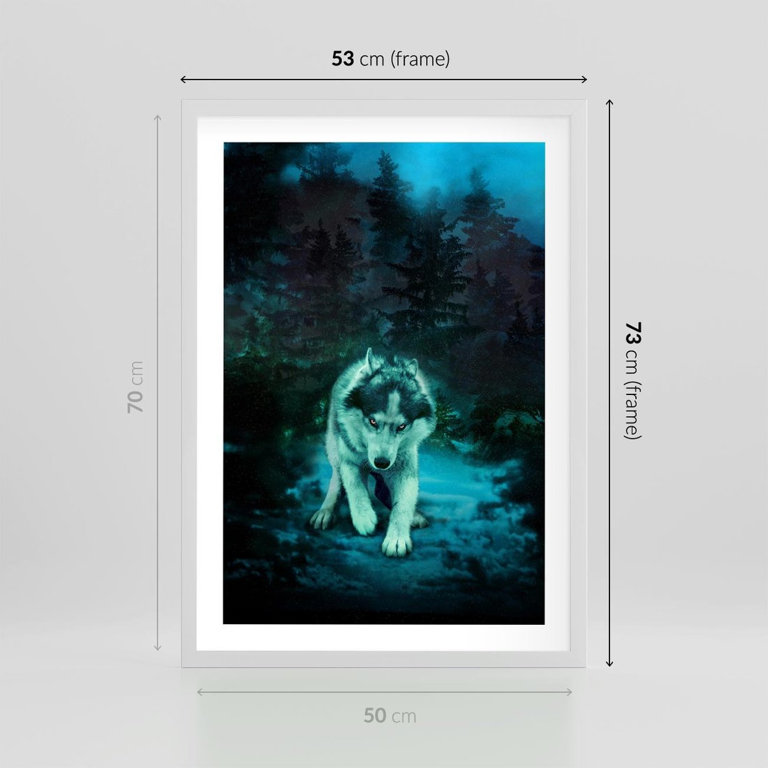 Plakat w ramie 50x70 - Siła i wdzięk natury - wilk, husky - rama biała