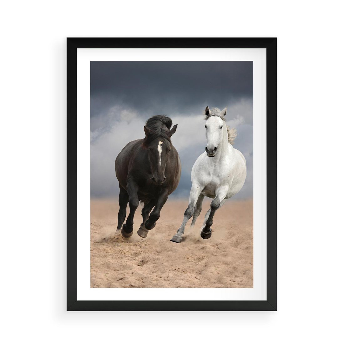Plakat w ramie 50x70 - Siła koni w galopie - konie, galop - rama czarna