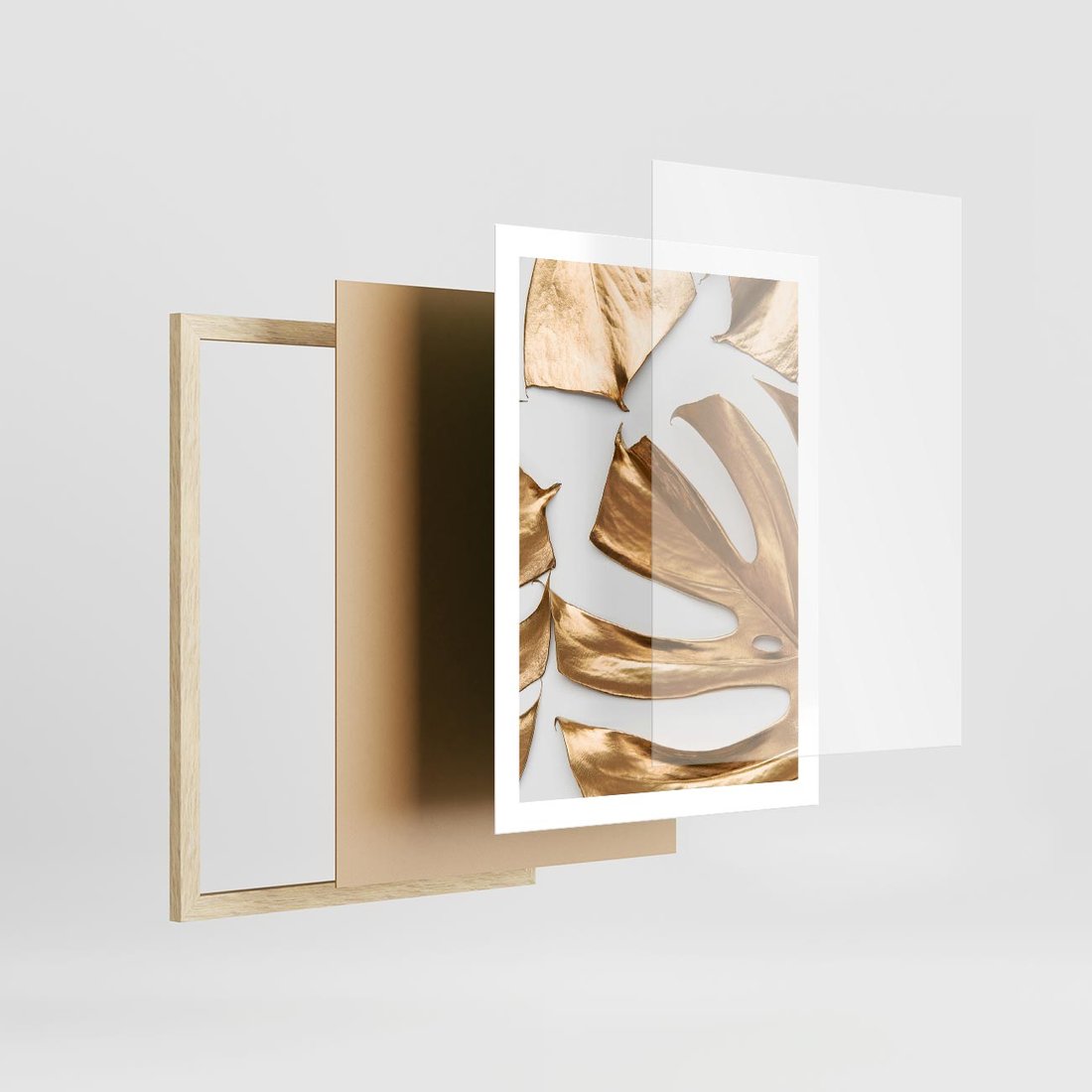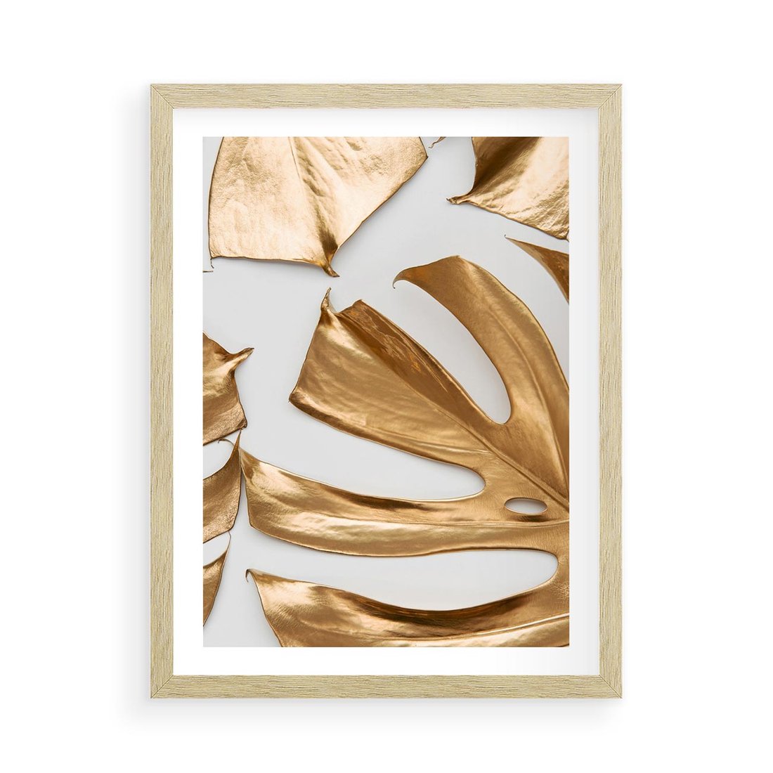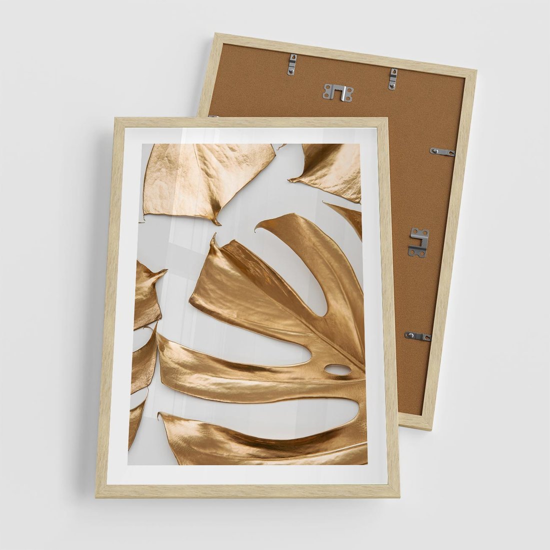 Dodaj ekskluzywności do swojego wnętrza za pomocą obrazu przedstawiającego złote liście monstera. Poczuj magię kontrastu i dodaj subtelności tej wyjątkowej kompozycji.