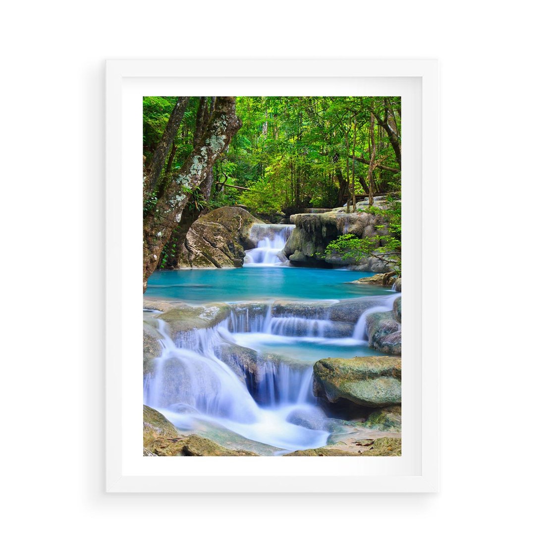Plakat w ramie 50x70 - Siła Rzeki i Urok Wodospadu - rzeka, wodospad - rama biała