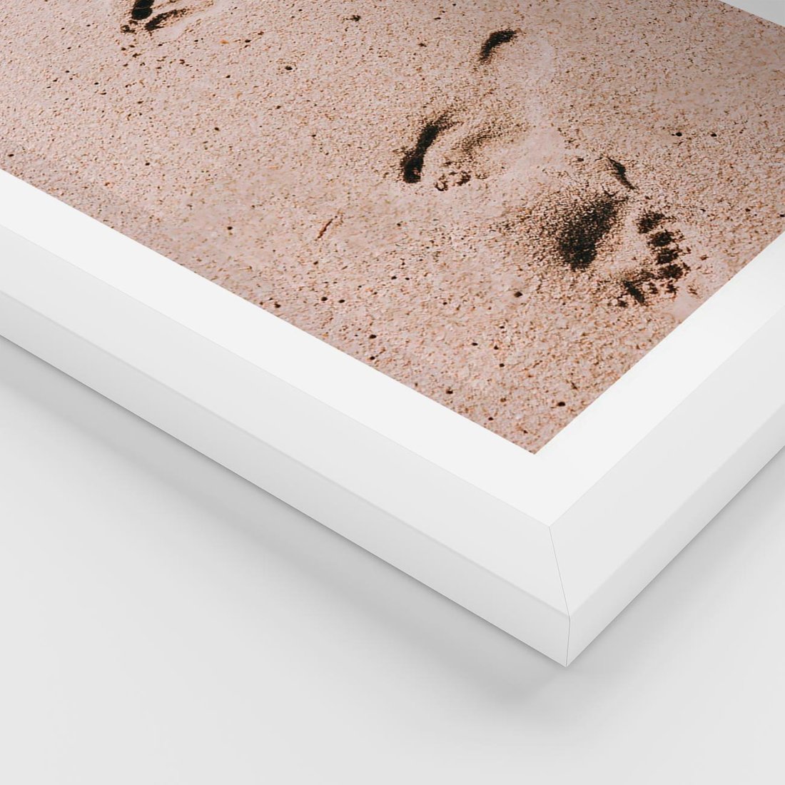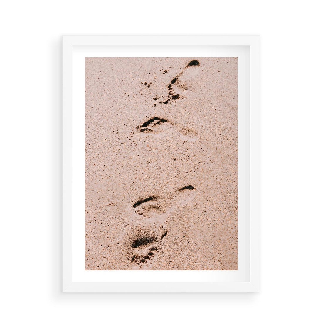 Plakat w ramie 50x70 - Ślady na Piasku - piasek, plaża - rama biała