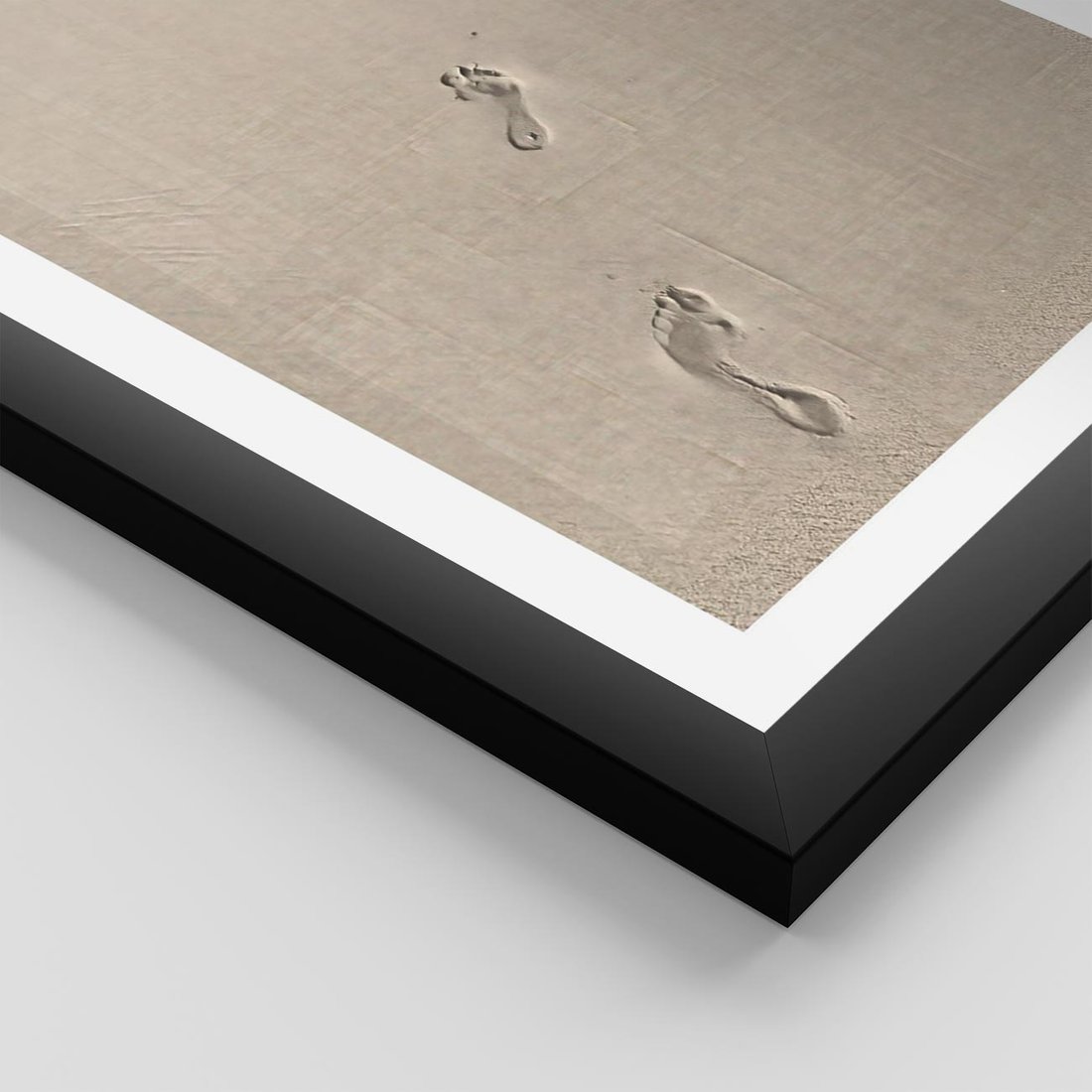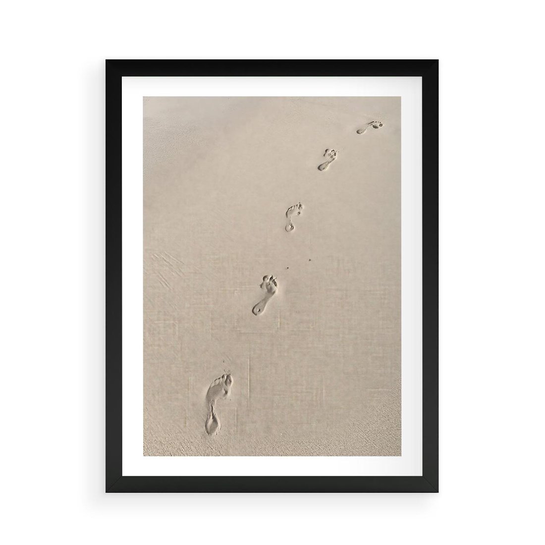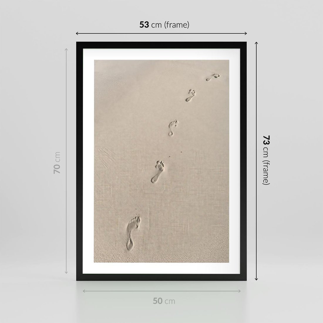 Plakat w ramie 50x70 - Ślady na Złocistym Piasku - piasek, ślady stóp na piasku - rama czarna